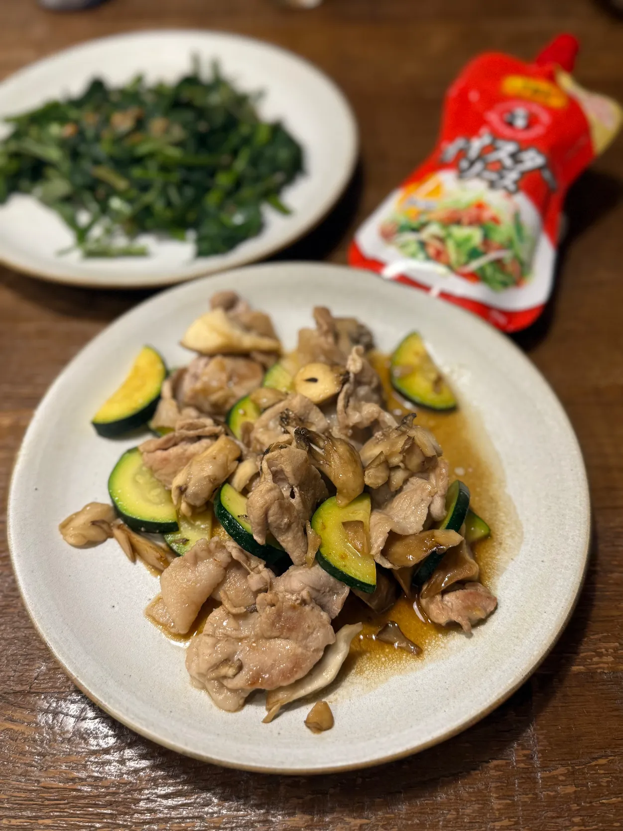 李錦記オイスターソースで簡単炒め物。旬のズッキーニと豚肉を炒めて、オイスターソースで絡めました。ご飯がすすむ一品。