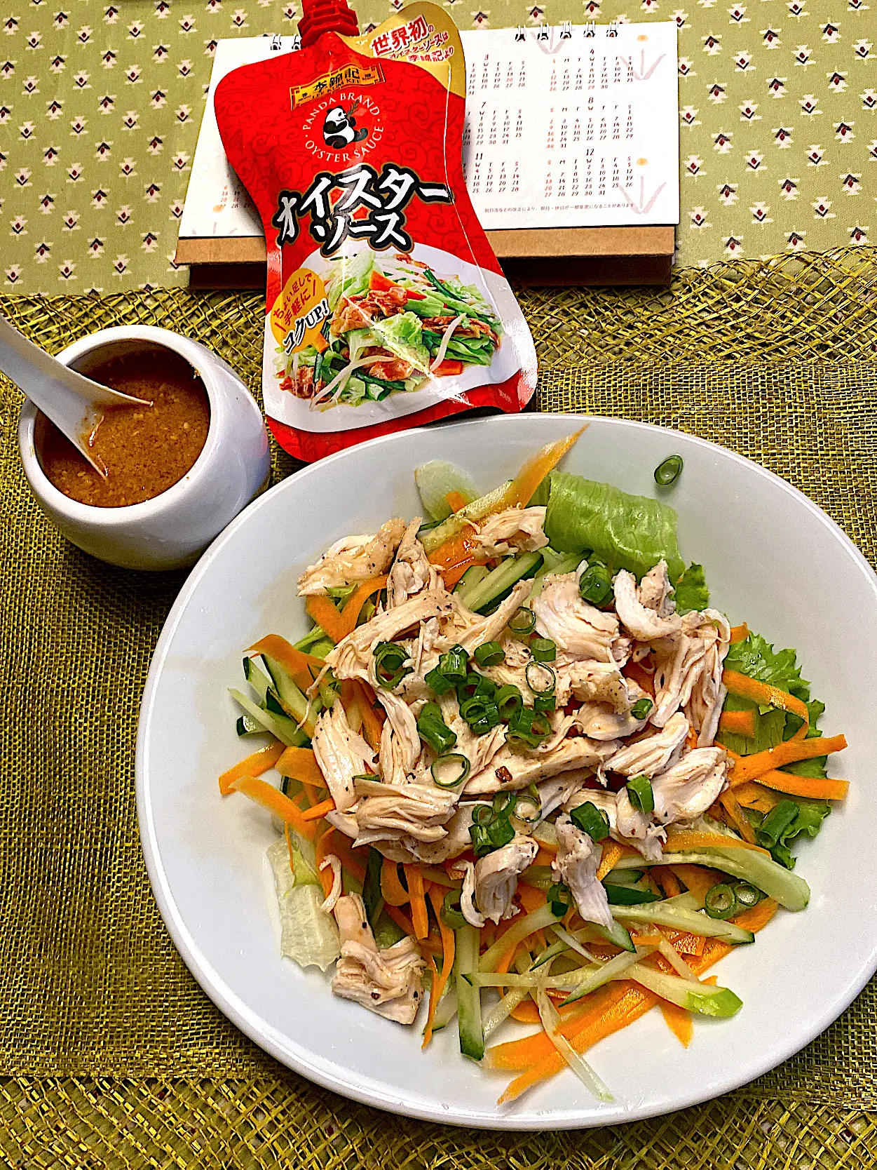 レタス、きゅうり細切り、にんじんはピーラーで簡単削り。ささみは酒を振って電子レンジ加熱で時短。