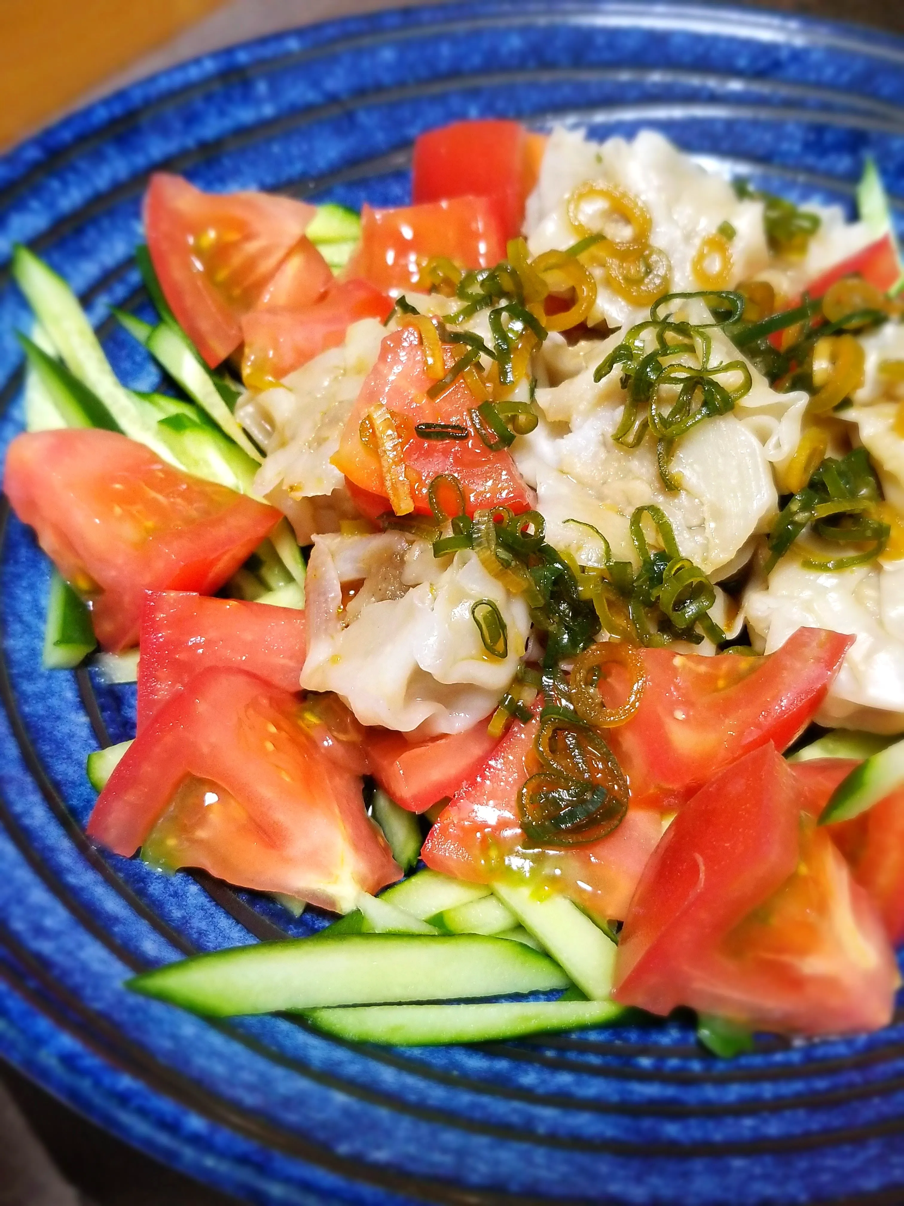 #晩ご飯 #簡単料理 #チルド焼売 #アレンジ #よだれ鶏 #トマト #きゅうり #青ネギ