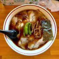 シャキシャキ野菜の他に、叉焼、メンマも入る。