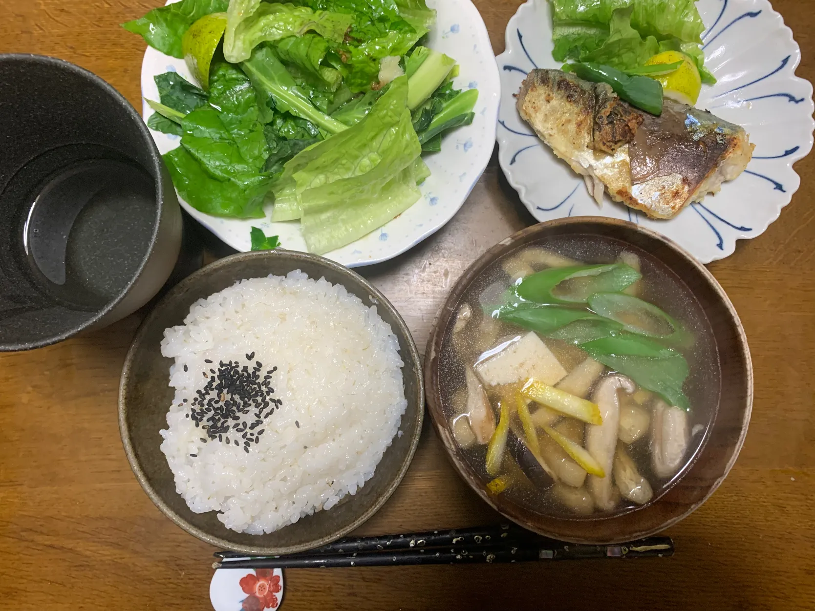 ・サバのムニエル(長崎県産、塩、胡椒、ニンニク、小麦粉