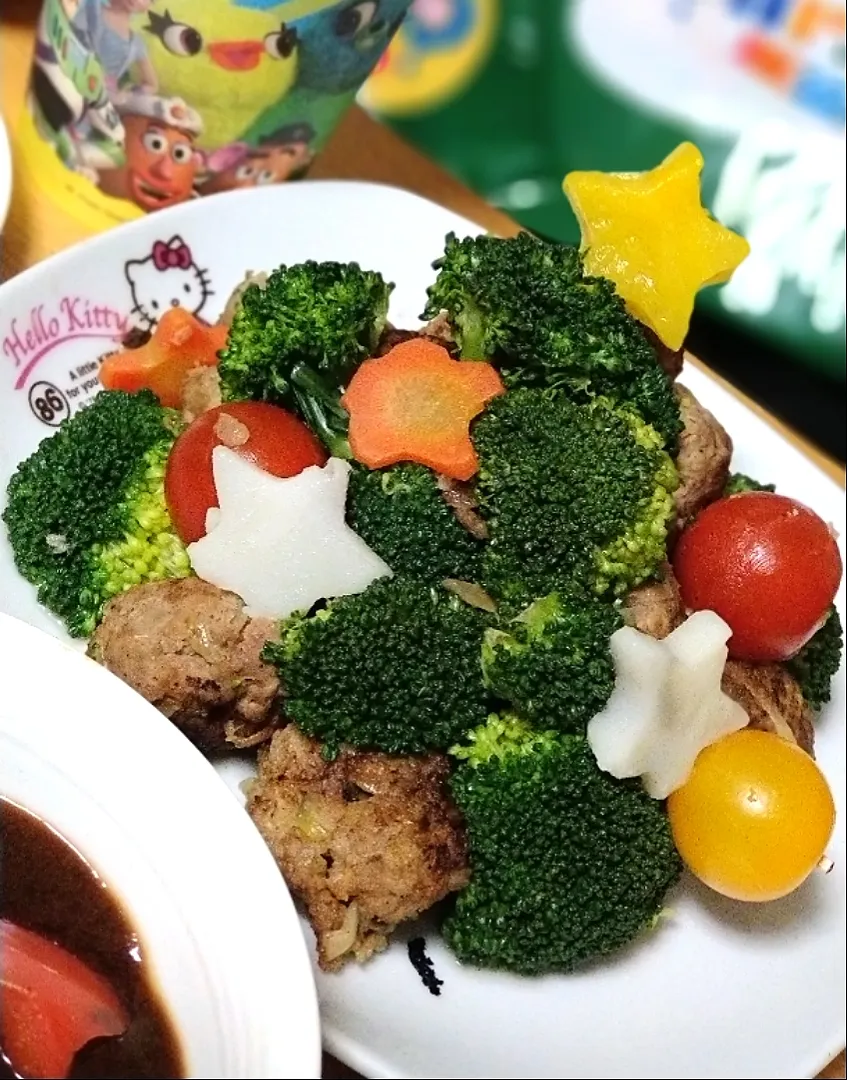 ミニトマトや人参、パプリカの星など飾りました〜。