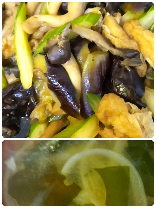 残っていた茄子とヒラタケを炒めようと思ったら一本傷んでいたので葉っぱが黄色くなったセロリとお揚げも入れて自家製無添加つゆで炒め煮🐱