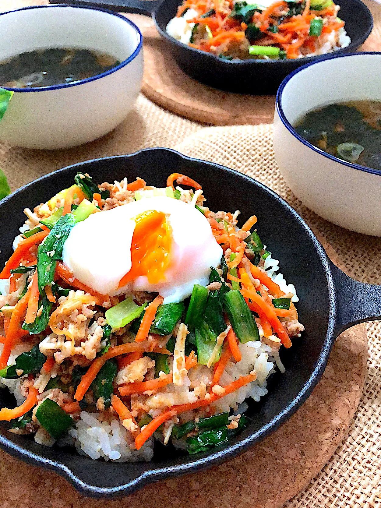 土曜日の昼ごはん😋ビビンバと鯖明太