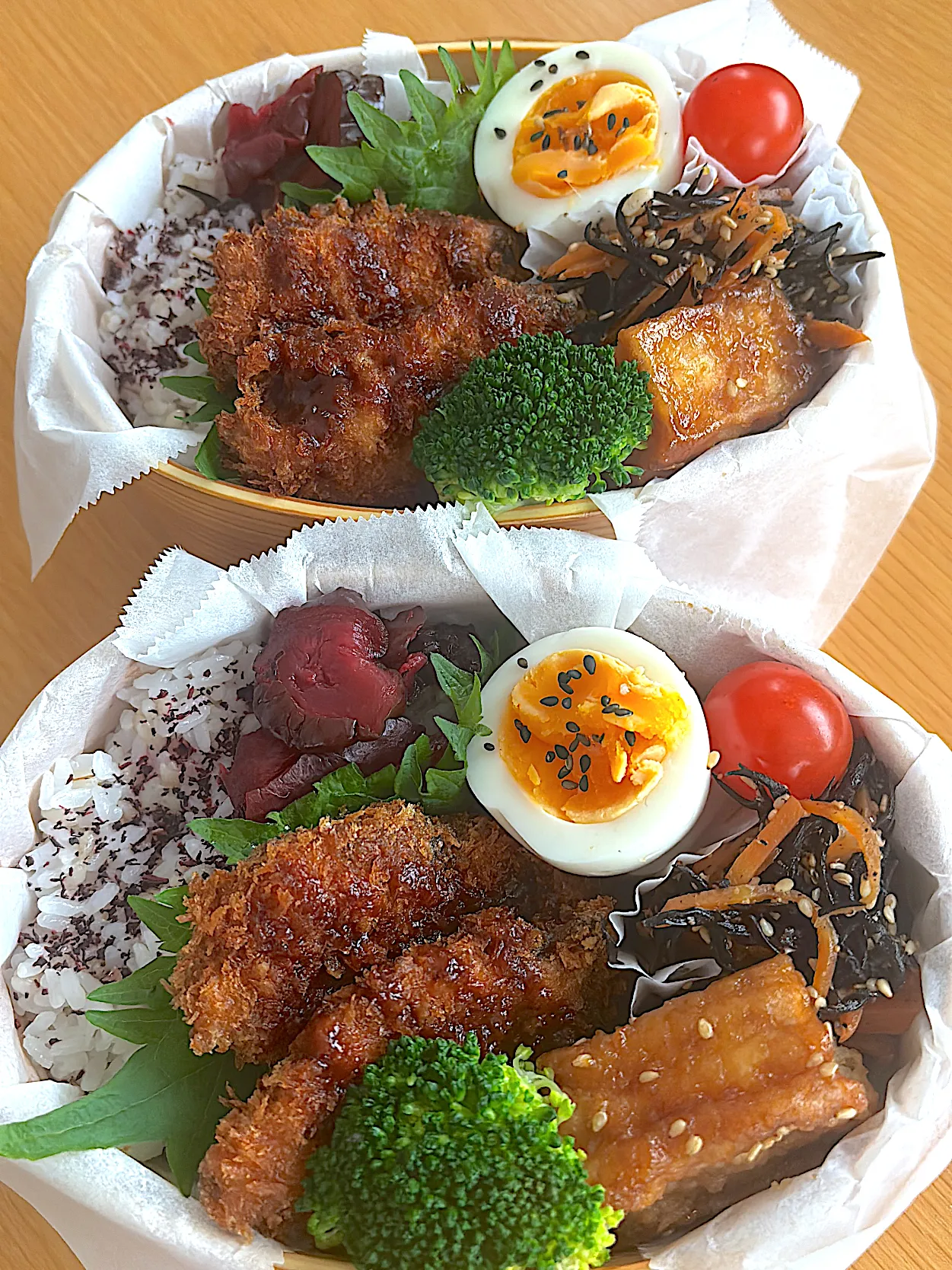 #お弁当 #中高生弁当 #ひじき煮 #ブリの竜田揚げ #ゆで卵 #厚揚げの照り焼き
