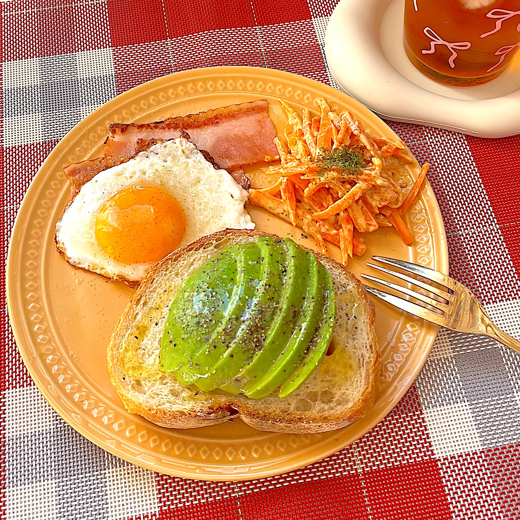 #アボカド #トースト #パン #ベーコンエッグ #目玉焼き #ワンプレート #モーニング #朝ごはん #自炊 #記録