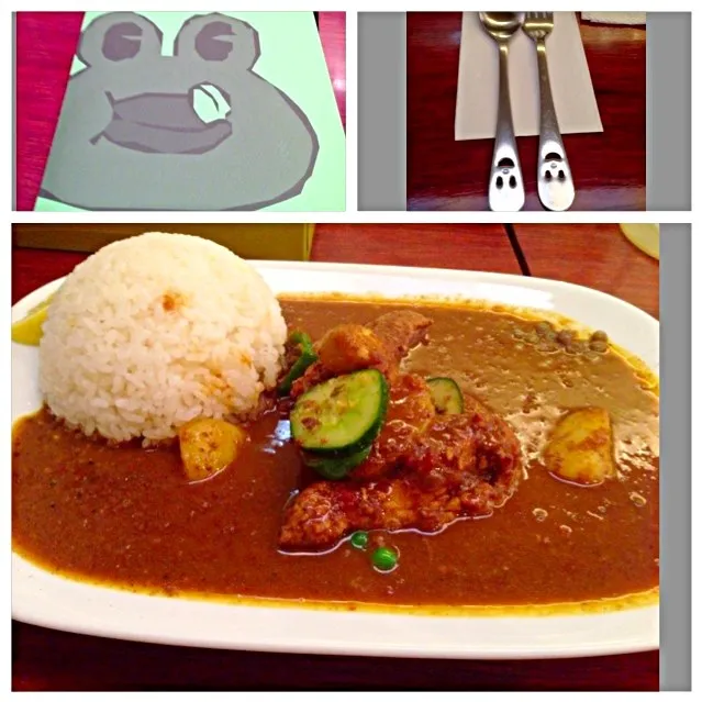 まずは基本のチキンと野菜のミックスカレーにした、店内もオサレでメニューやスプーンとかもオサレ。