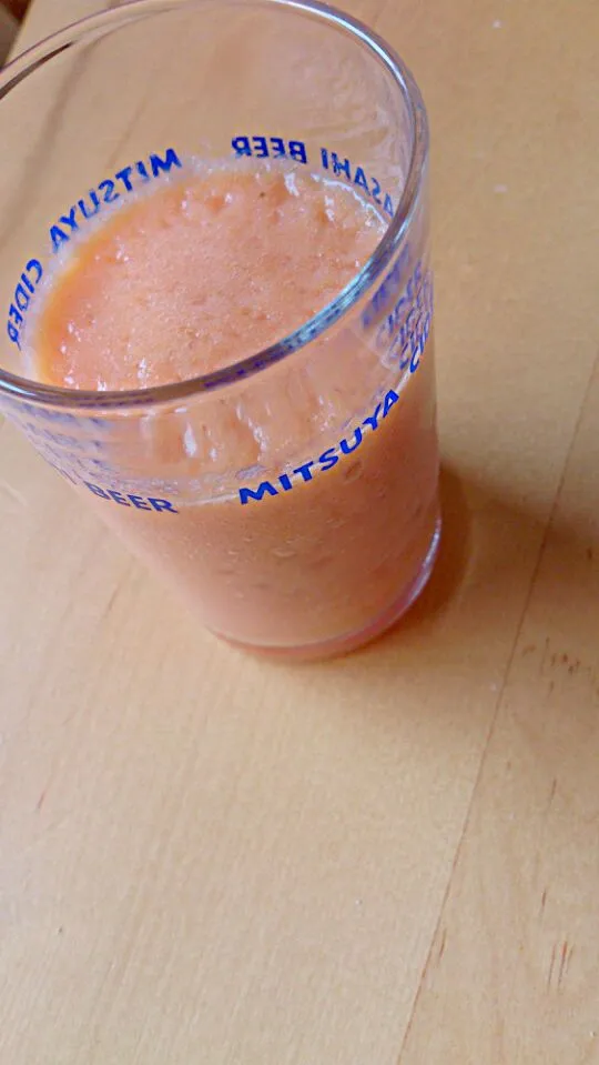 お昼に余った茹で人参とバナナと牛乳をミックス。おやつのジュースになりました(*^^*)