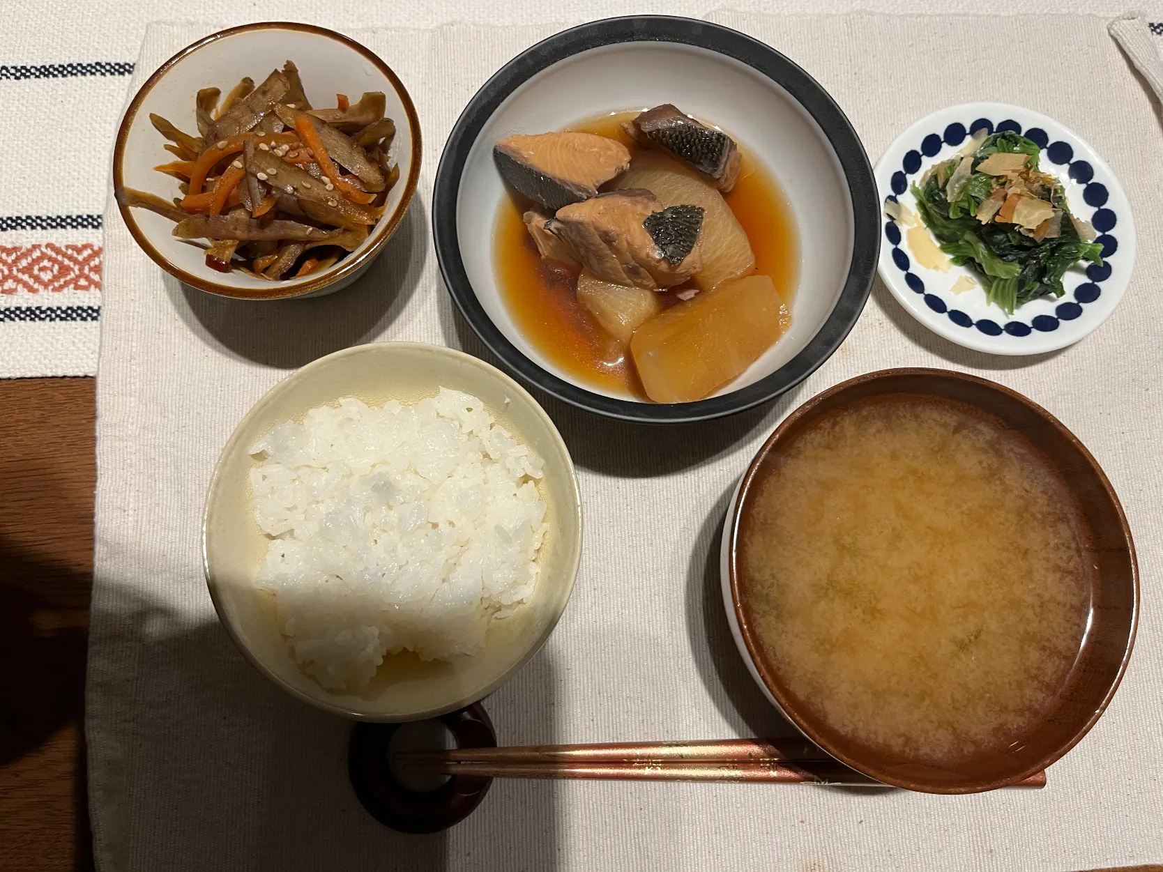 #大根 #魚 #きんぴらごぼう #ほうれん草 #晩御飯