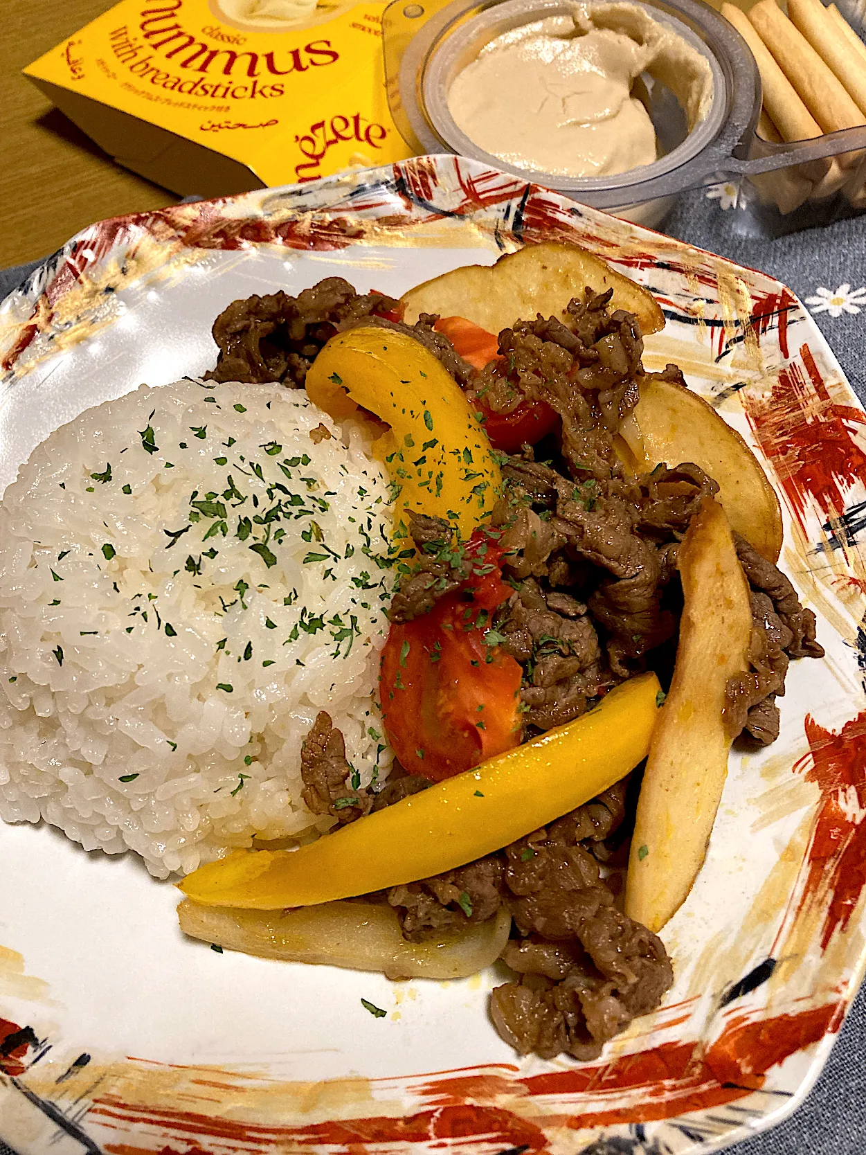 奥に写ってるのはヨルダンパビリオンで買ったフムス