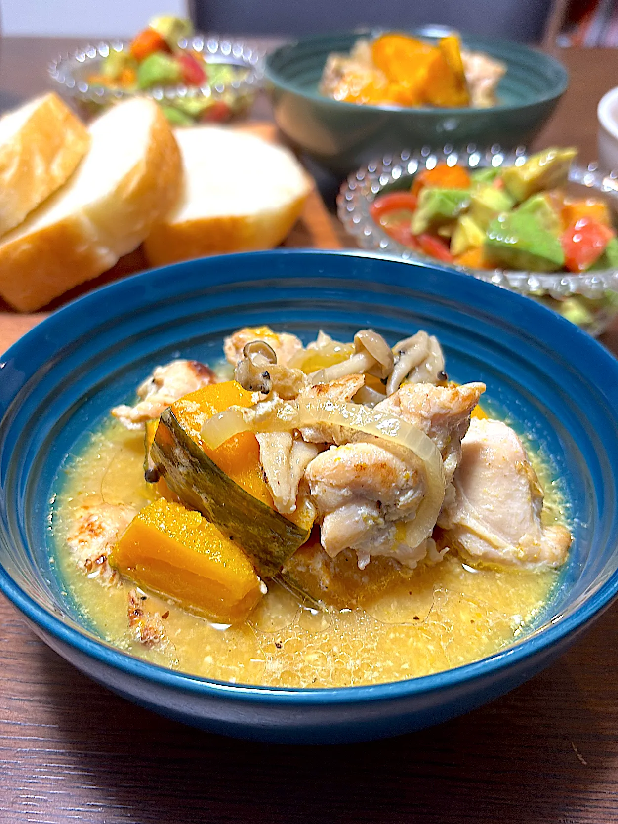 #かぼちゃレシピ #シチュー #塩麹漬け #鶏肉の塩麹漬け #コク #とろみ #ヘルシーメニュー #柿 #アボカド #クミン #サラダレシピ #フォカッチャ #手作りごはん #食欲の秋