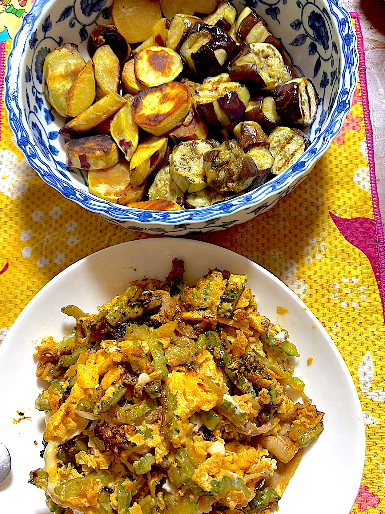 茄子🍆とさつまいも🍠の焼き浸し ゴーヤと豚肉の卵とじ