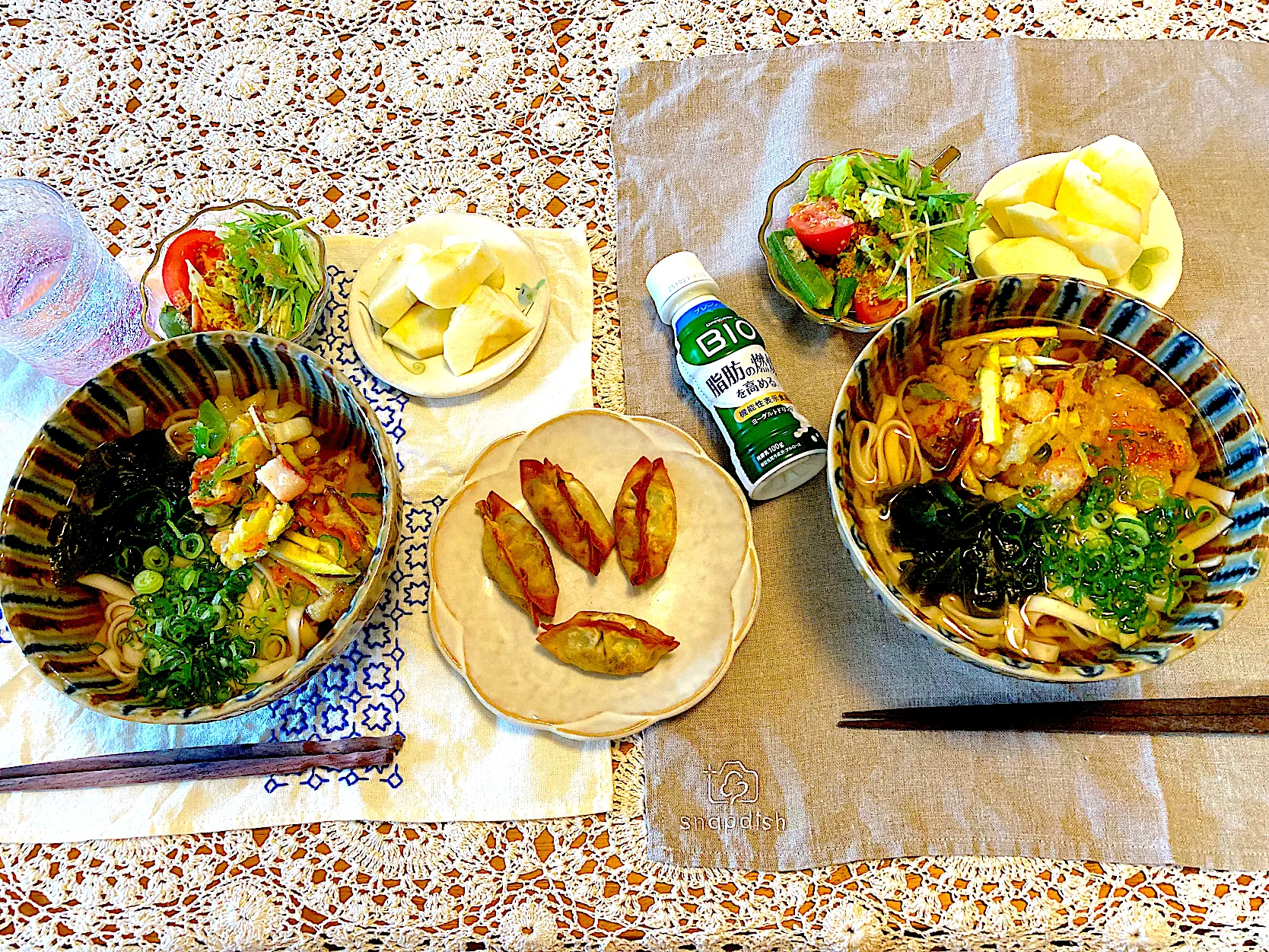 玉ねぎ、人参、えび、イカ、コーン、サツマイモ、ピーマン入り。