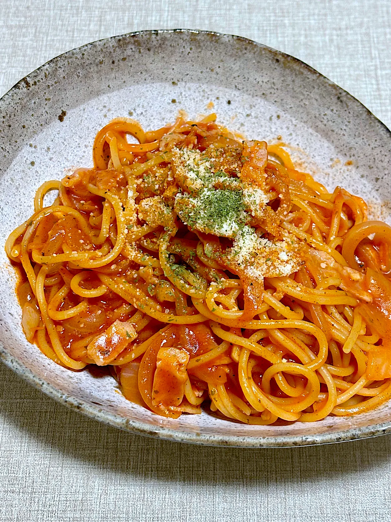 #ひとりごはん #おうちごはん #アルモンデ #KAGOME #トマトジュース #トマトパスタ #ワンパン #休日ごはん