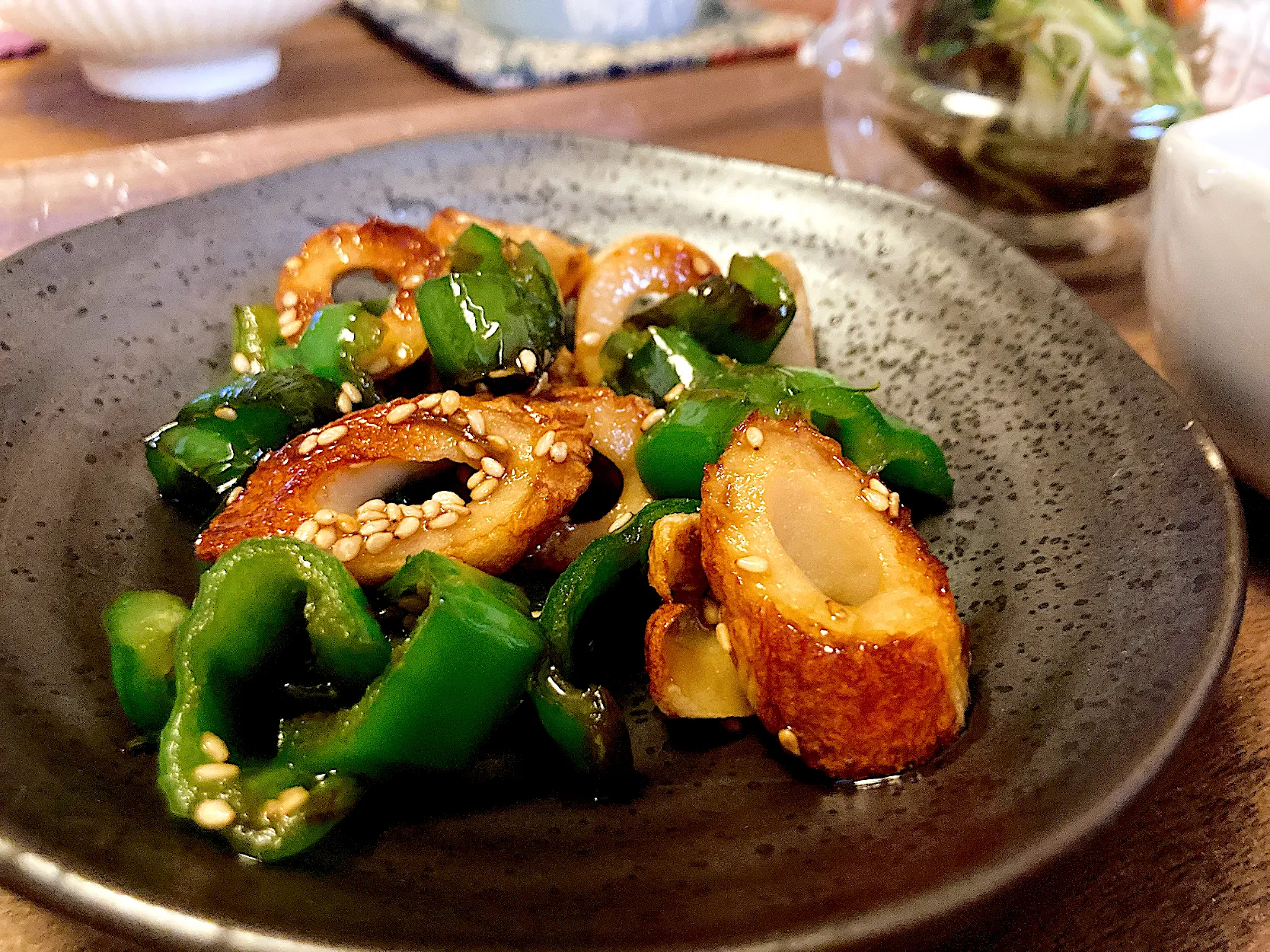 最後のひと品は相性抜群の竹輪と一緒にきんぴらにしました🫑