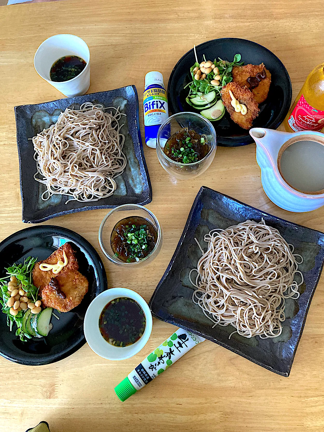 十割そば🤎鯛のフライ🤎お豆のサラダ🤎蕎麦湯🤎心太🤎ヨーグルトドリンク🤎アップルシードル