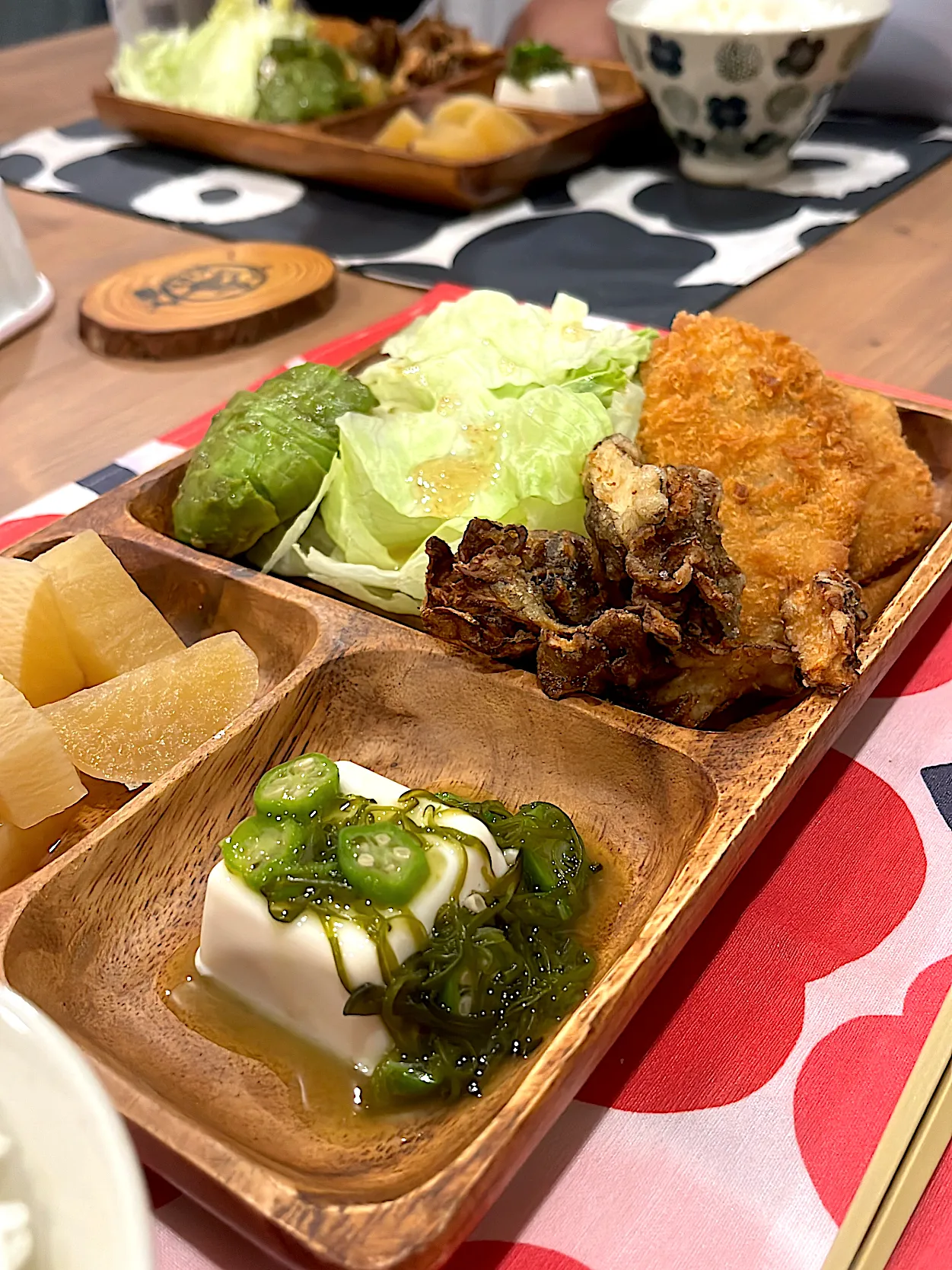#3人家族 #簡単料理 #晩御飯 #舞茸 #唐揚げ #鯵 #サラダ #揚げ物 #魚料理 #簡単料理 #めかぶ #オクラ