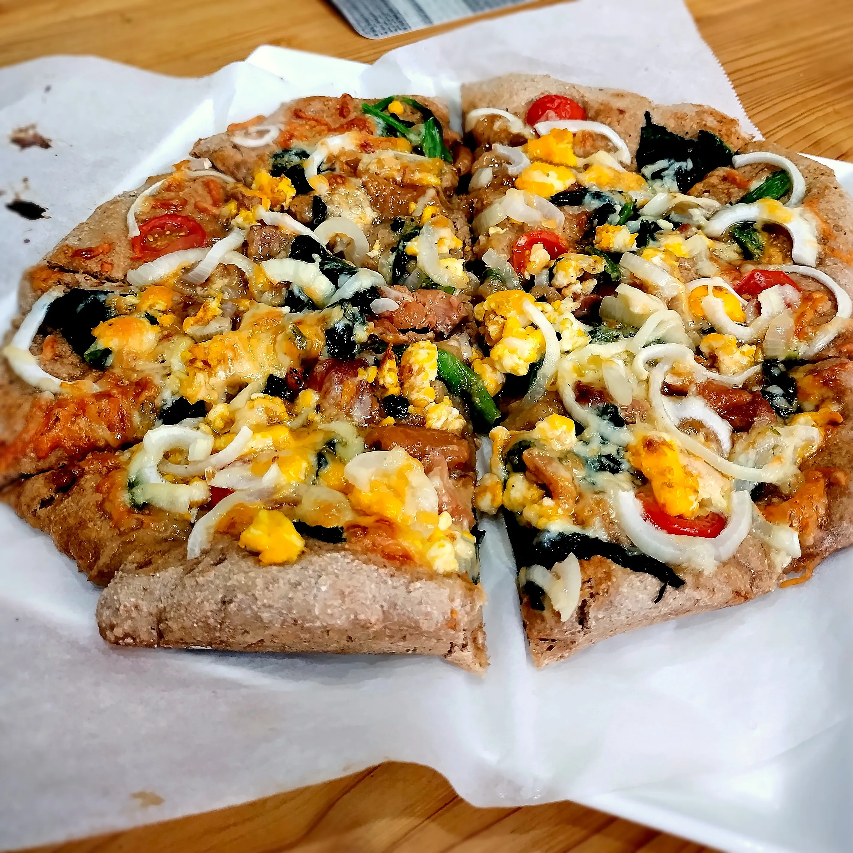 全粒粉ならではの香りと盛り沢山の具材で幸せピザになりました!