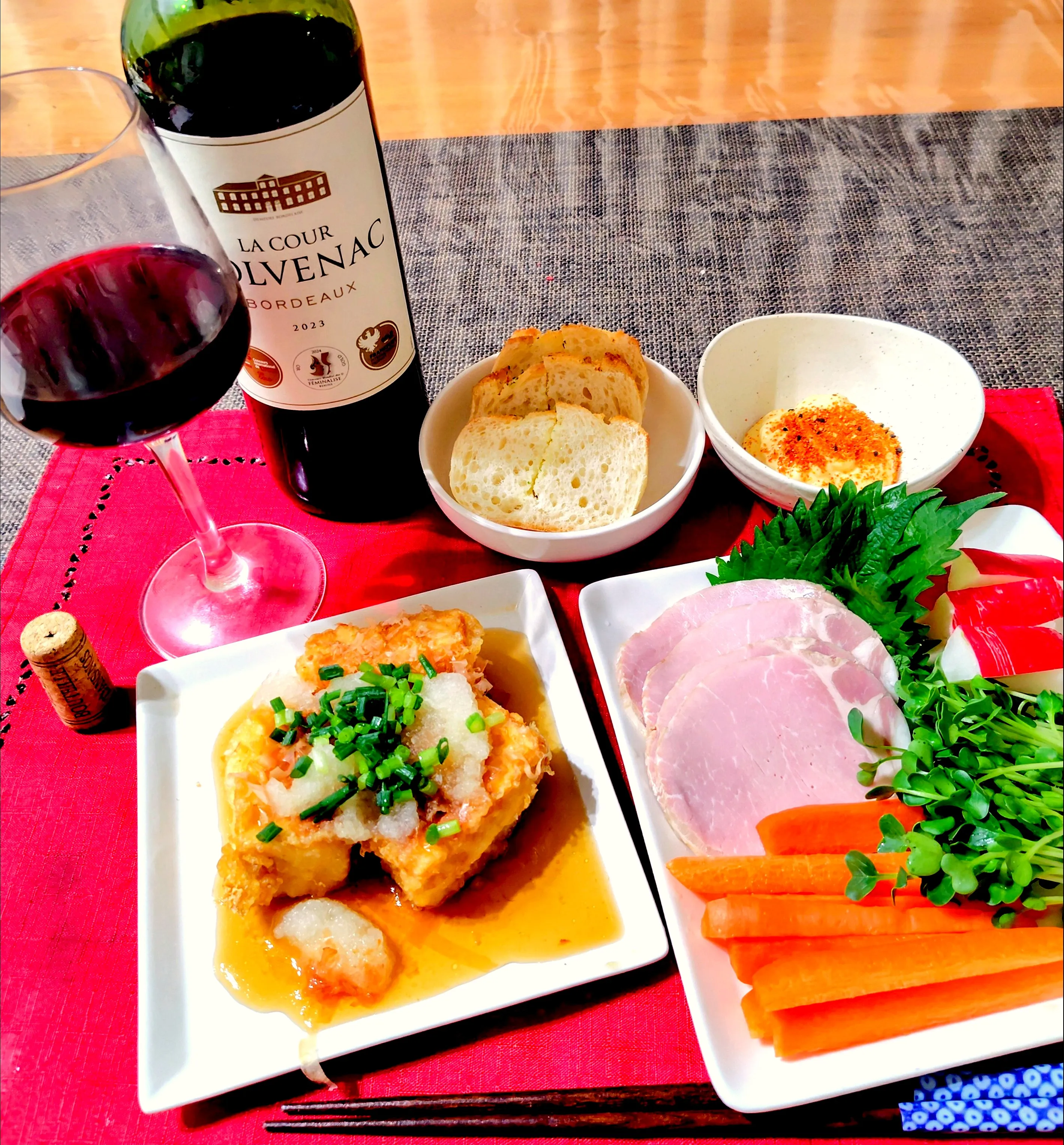 揚げ出し豆腐だけ作り、無添加のロースハムと野菜たち✨