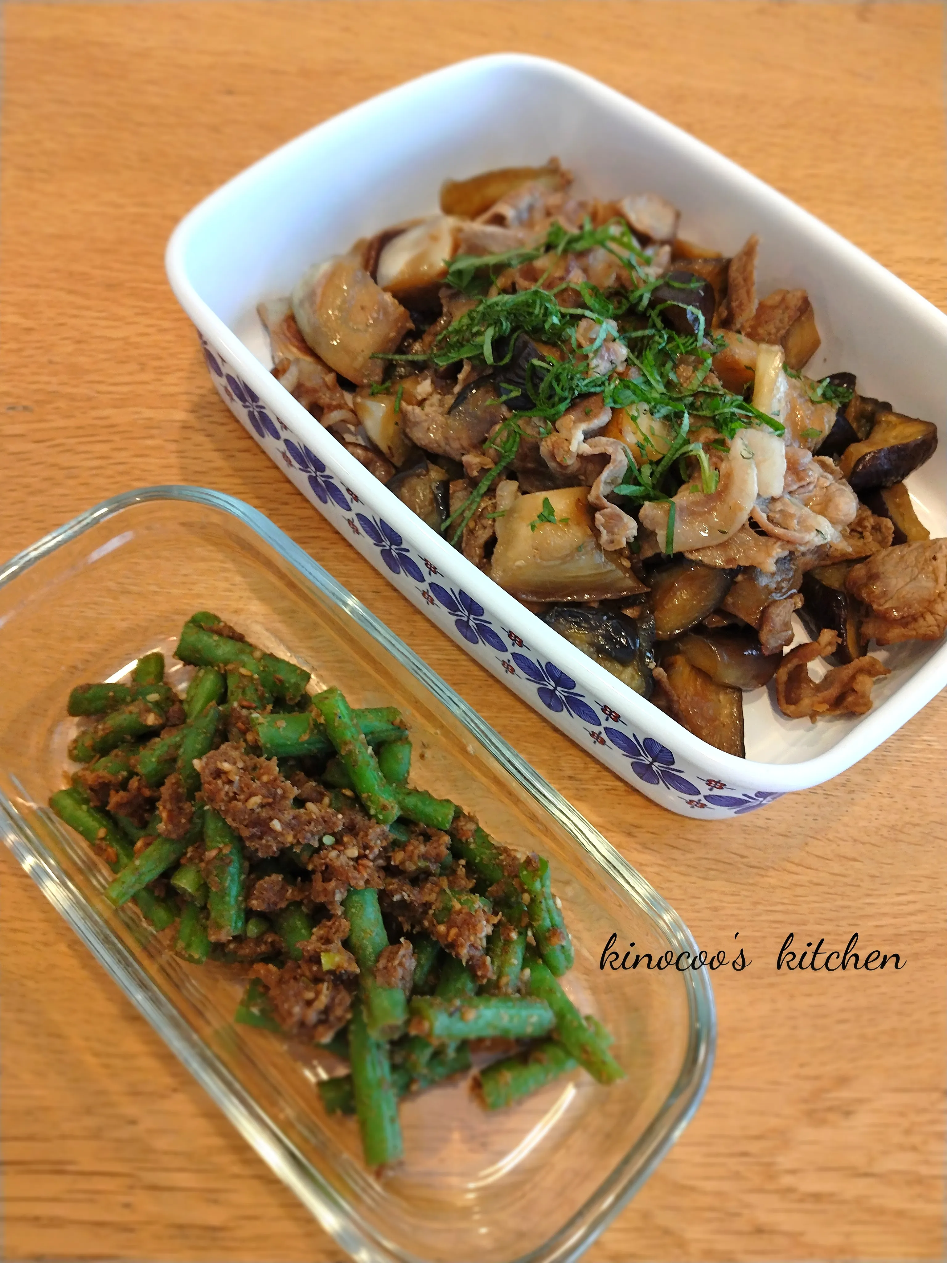 ☆常備菜☆いんげんかつおゴマ和え、ナスと豚バラのポン酢炒め|kinocooさん
