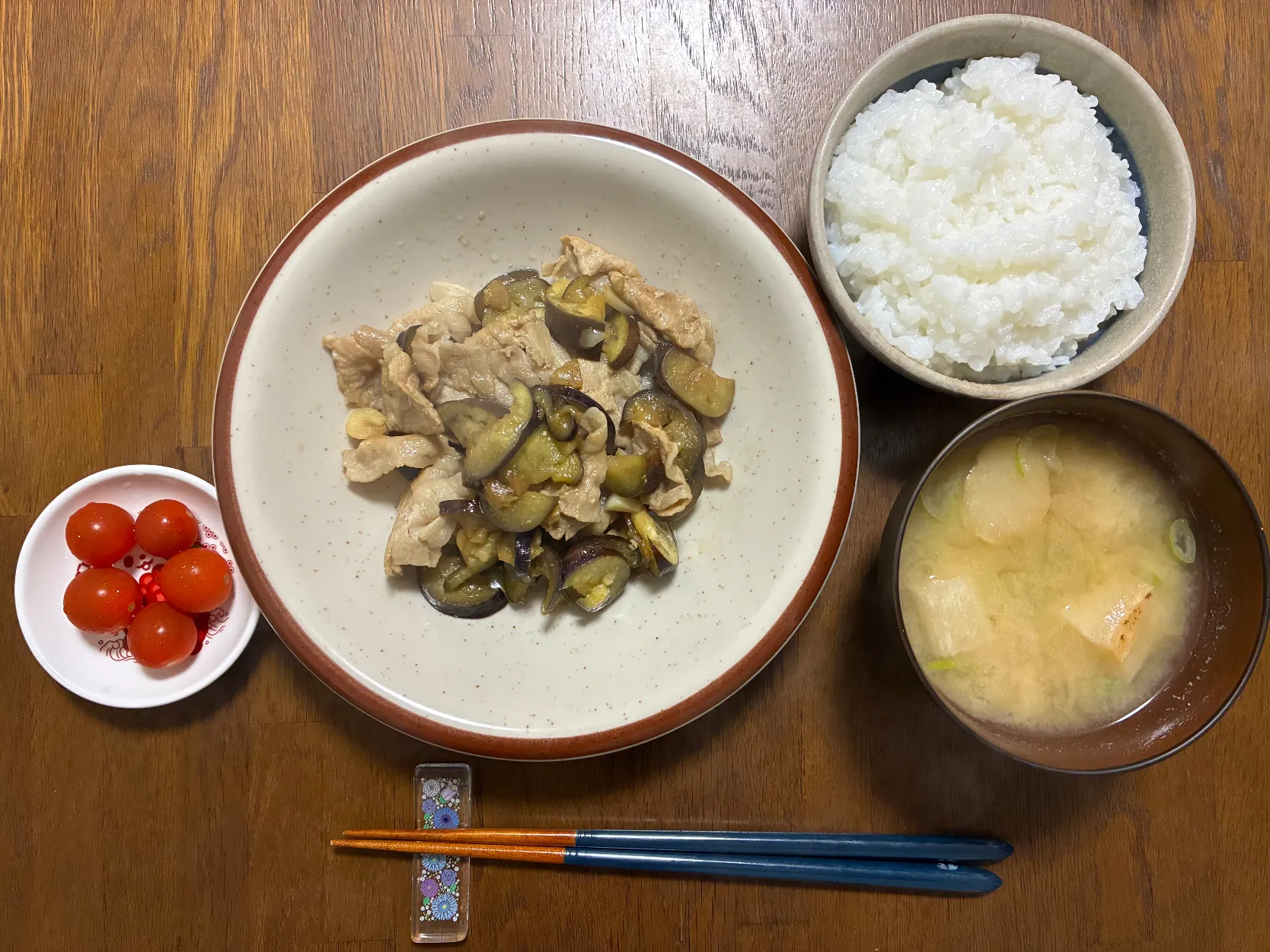 #家庭料理 #簡単レシピ #豚肉 #茄子 #にんにく炒め #味噌汁