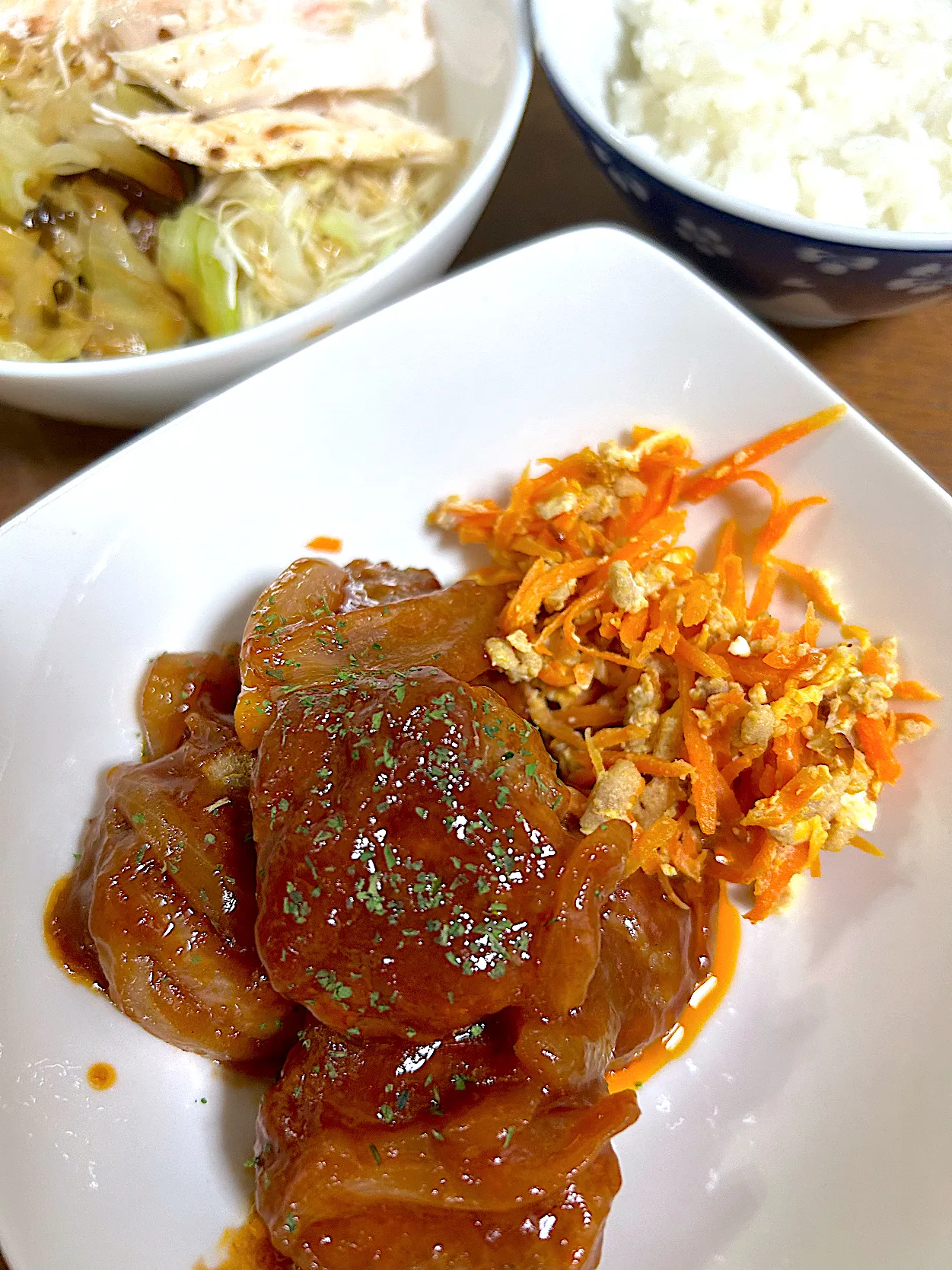 手前→ハンバーグににんじんシリシリ添えてびっくり