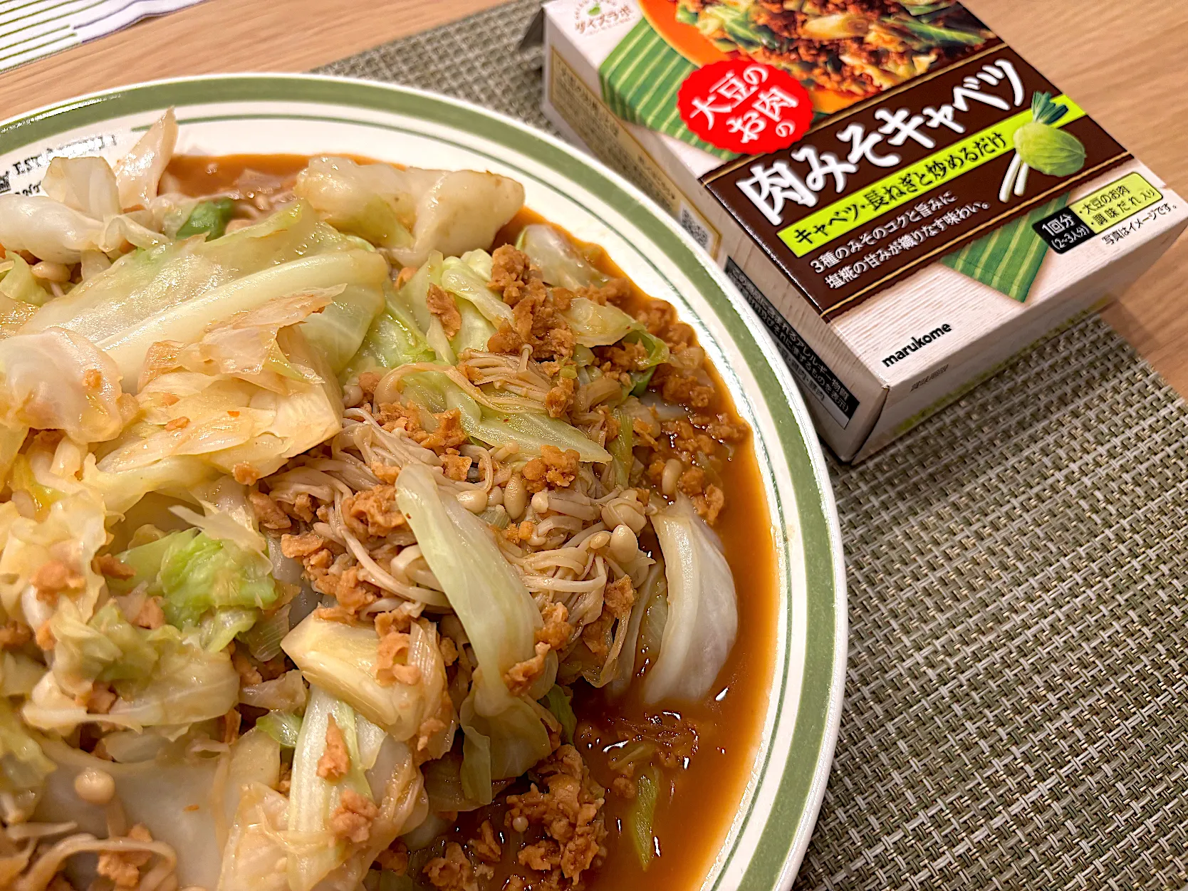 パッケージの材料にえのき1パックを追加して作成。味噌と生姜とにんにくの風味が食欲をそそりました♪