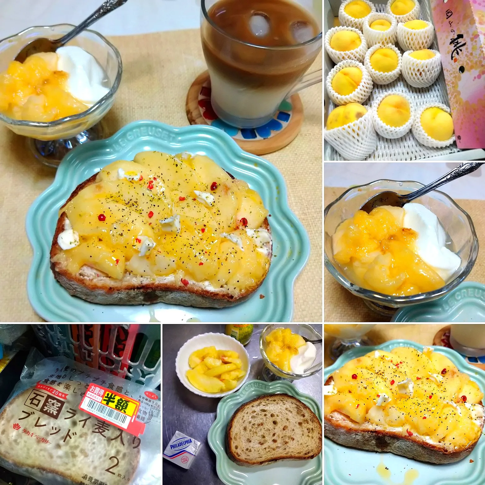 #岡山県産白桃#清水白桃#白桃トースト#おうちカフェ#桃のオープンサンド#ピーチトースト#peach#桃トースト