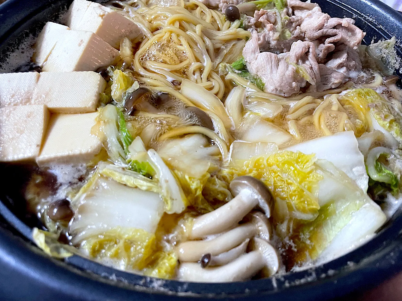 中華そばを使った白菜としめじ、豚肉と白だし鍋です