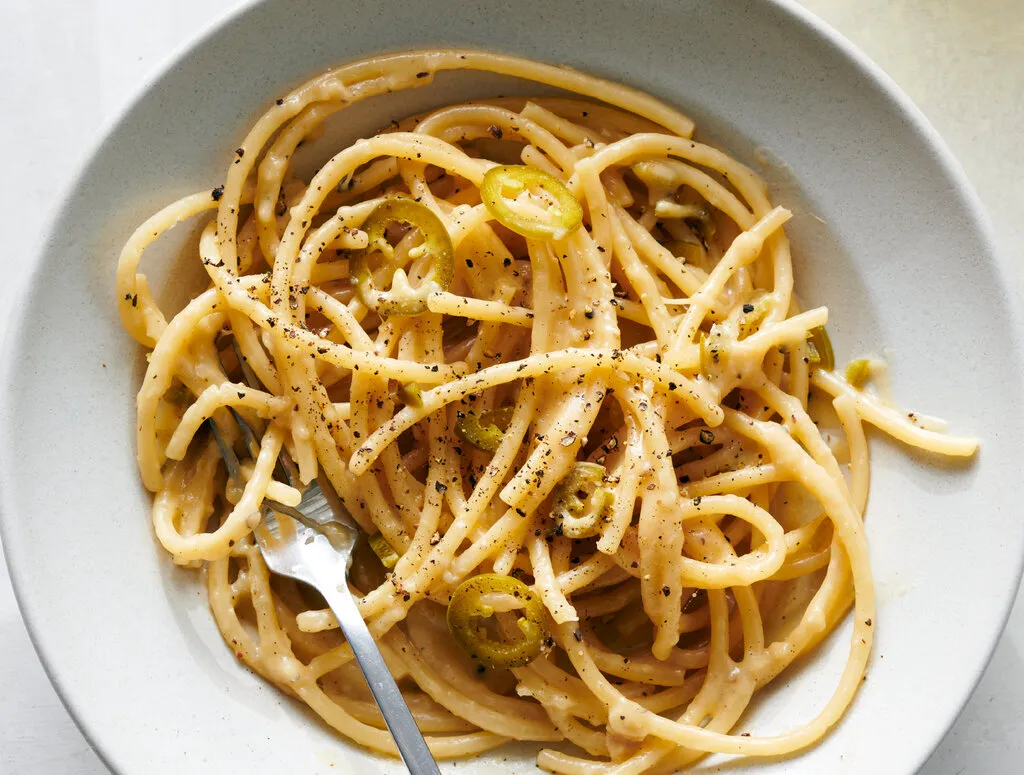 味噌、パルメザンチーズ、ピクルスピーマンのパスタ