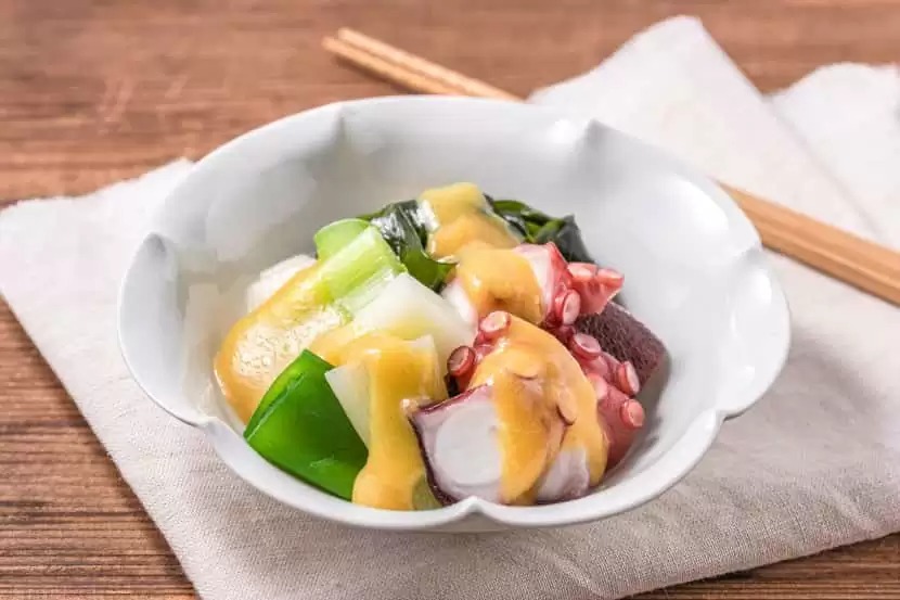 シンプルにたこを味わう王道レシピです。程よい甘みと酸味、からしの風味が食材を引き立てます。