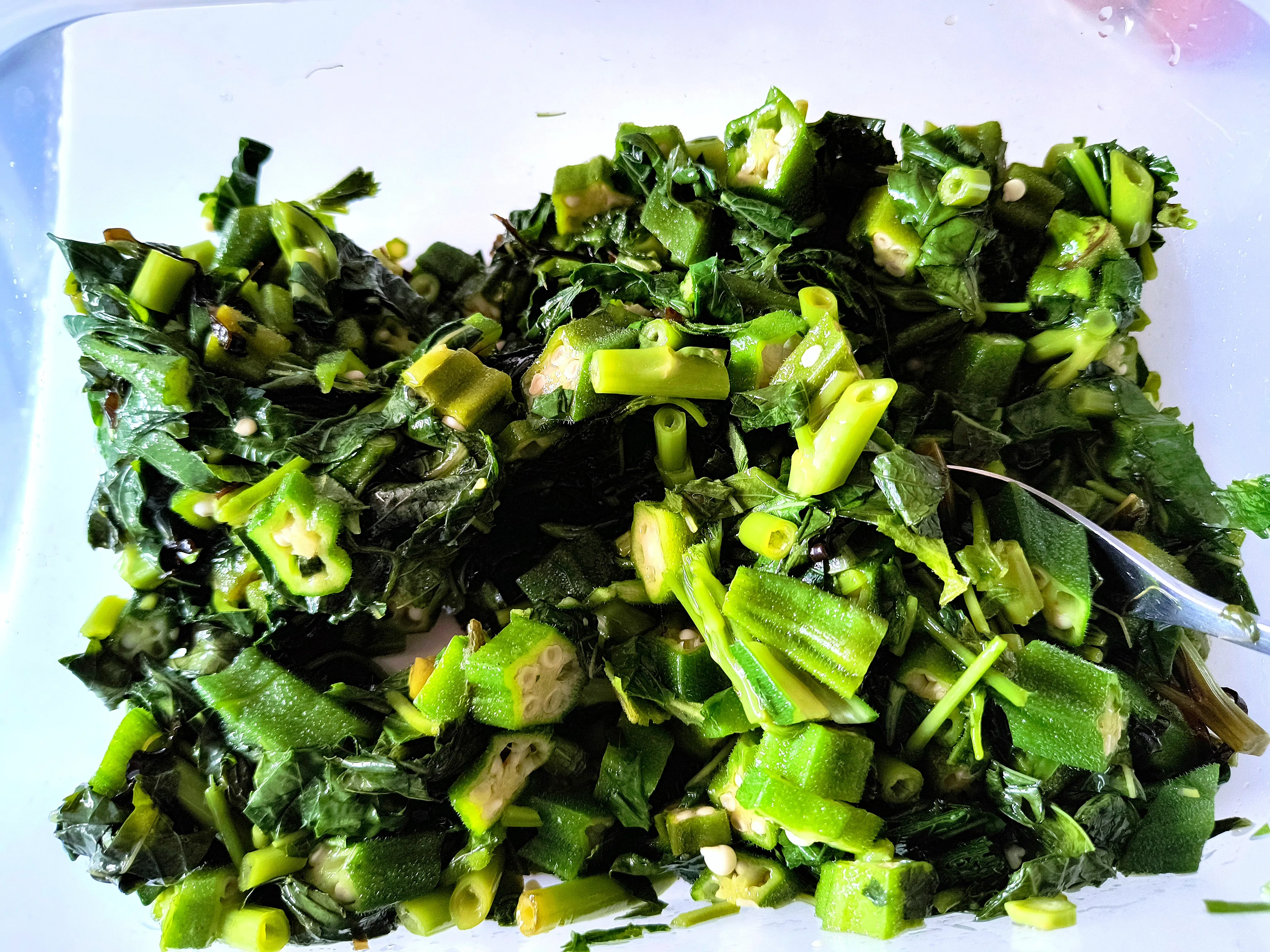 を、茹でて刻んでポン酢と塩昆布で味付け。豆腐にかけて食べる。