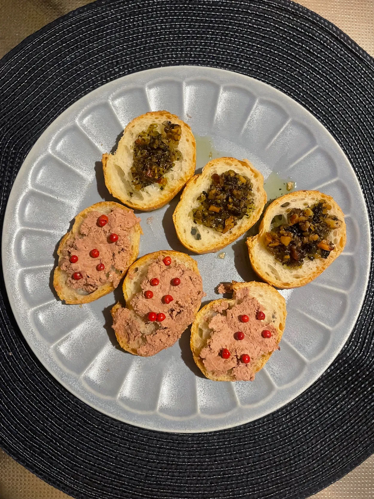 もう一つはポンパドウルで見つけたザクザク食べるオリーブオイルをバゲットに乗せました