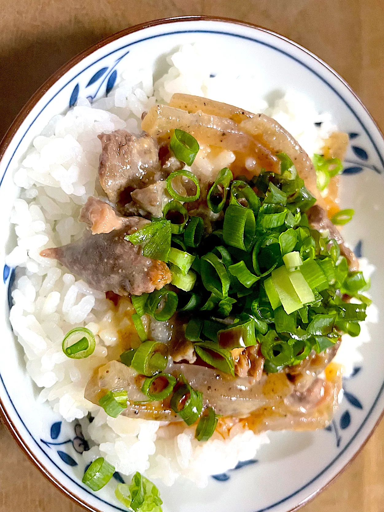 母が作ってくれた土手焼きを丼物にして食べました😋
