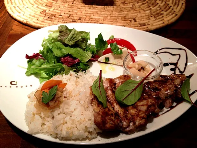 豚肉バルサミコソースと採れたて野菜の玄米プレート
