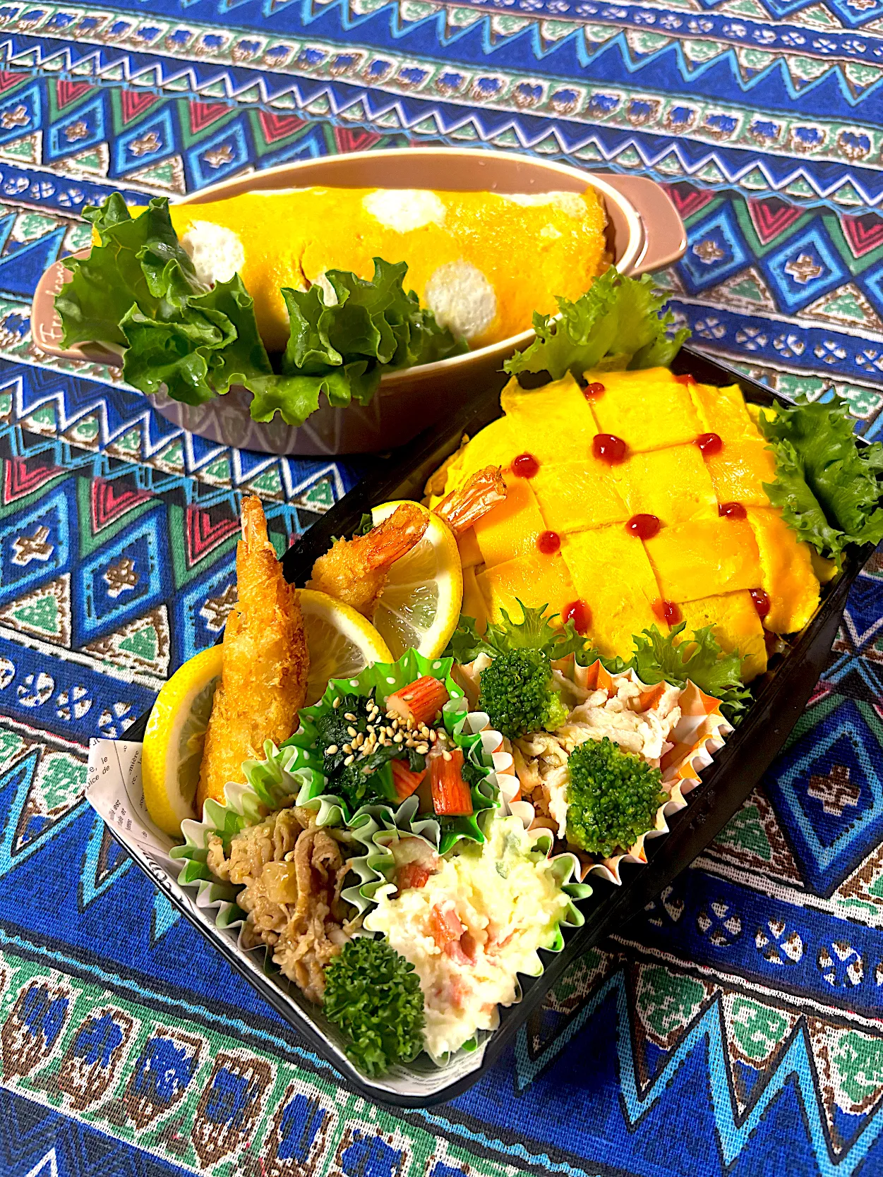 #お弁当#オムライス弁当#エビフライ#キャラ弁#ポテトサラダ
