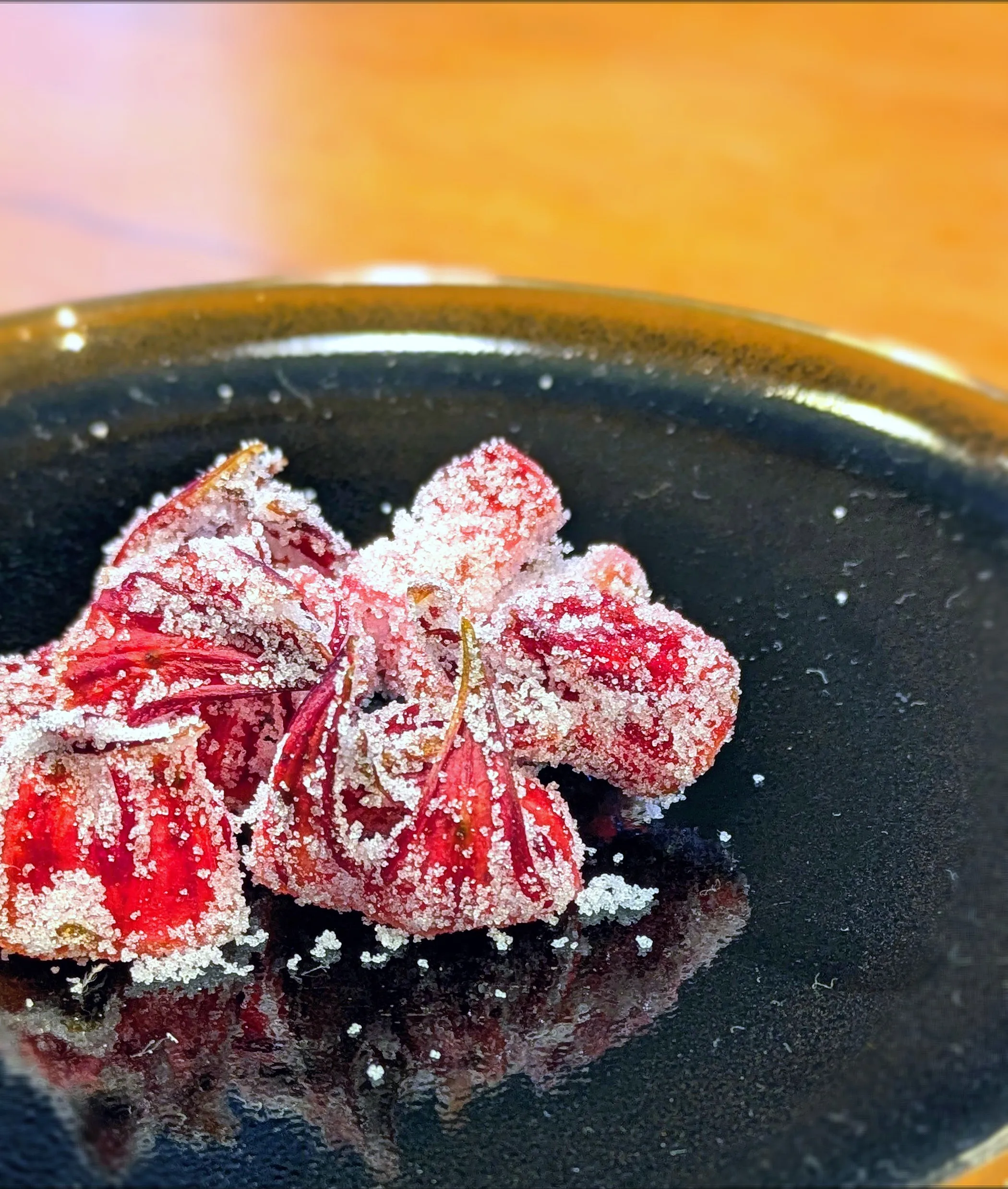 ローゼルは食用ハイビスカスの事で、ポリフェノールやビタミンCが豊富で体に良さそうな効能がたくさんあるみたいです。