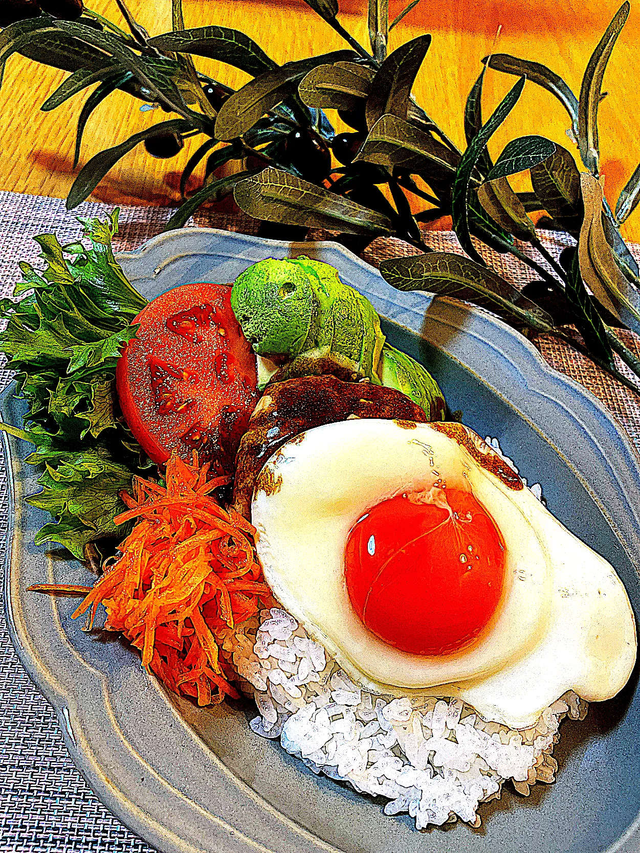 なんちゃってロコモコ丼&コンソメスープ&ミニトマト