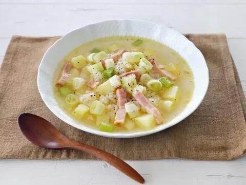 "フランスとの国境沿い、スペイン北東部にある""バスク地方""の郷土料理。「ポールサルダ」という、ねぎが主役の素朴なスープをアレンジした和DEミックスなレシピです。味付けベースの「ヤマサ昆布つゆ 白だし」は、オリーブオイルと香ばしく炒めたにんにくをプラスすると、ガラリと表情を変え洋風のヒトサラに仕上がります。"