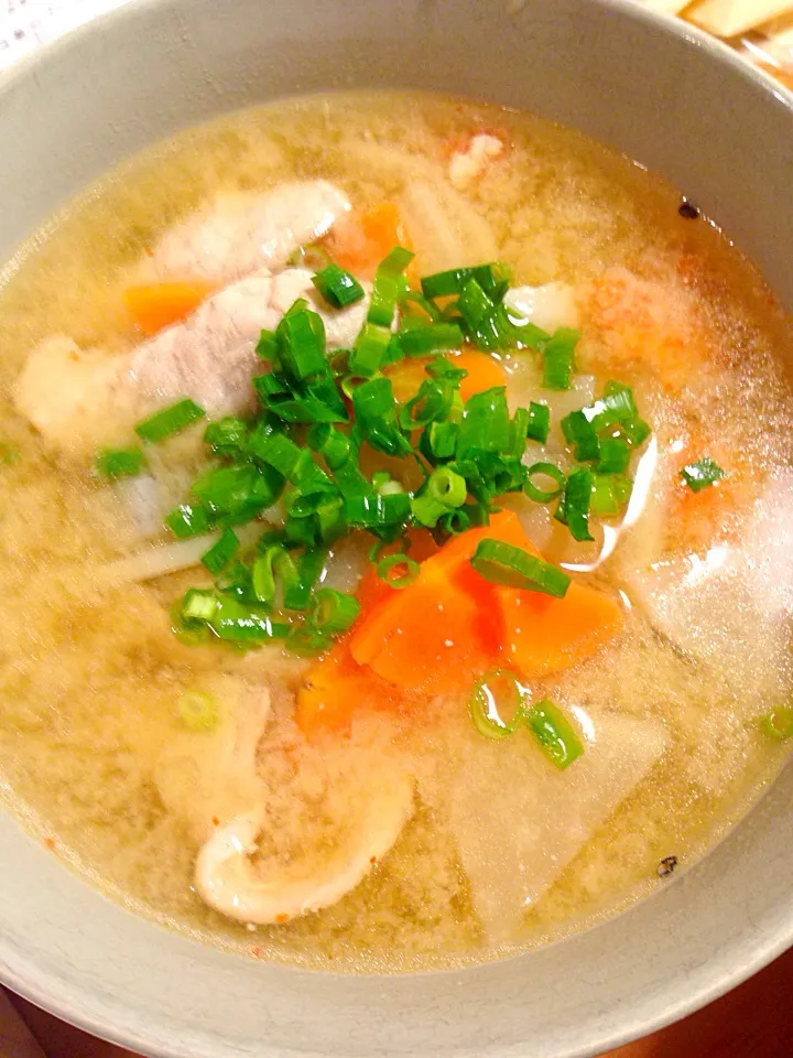 ホンマ寒い時は豚汁エエなぁー。うちはな、一味かけて食べるねんよ。辛いの苦手なくせにな(笑)