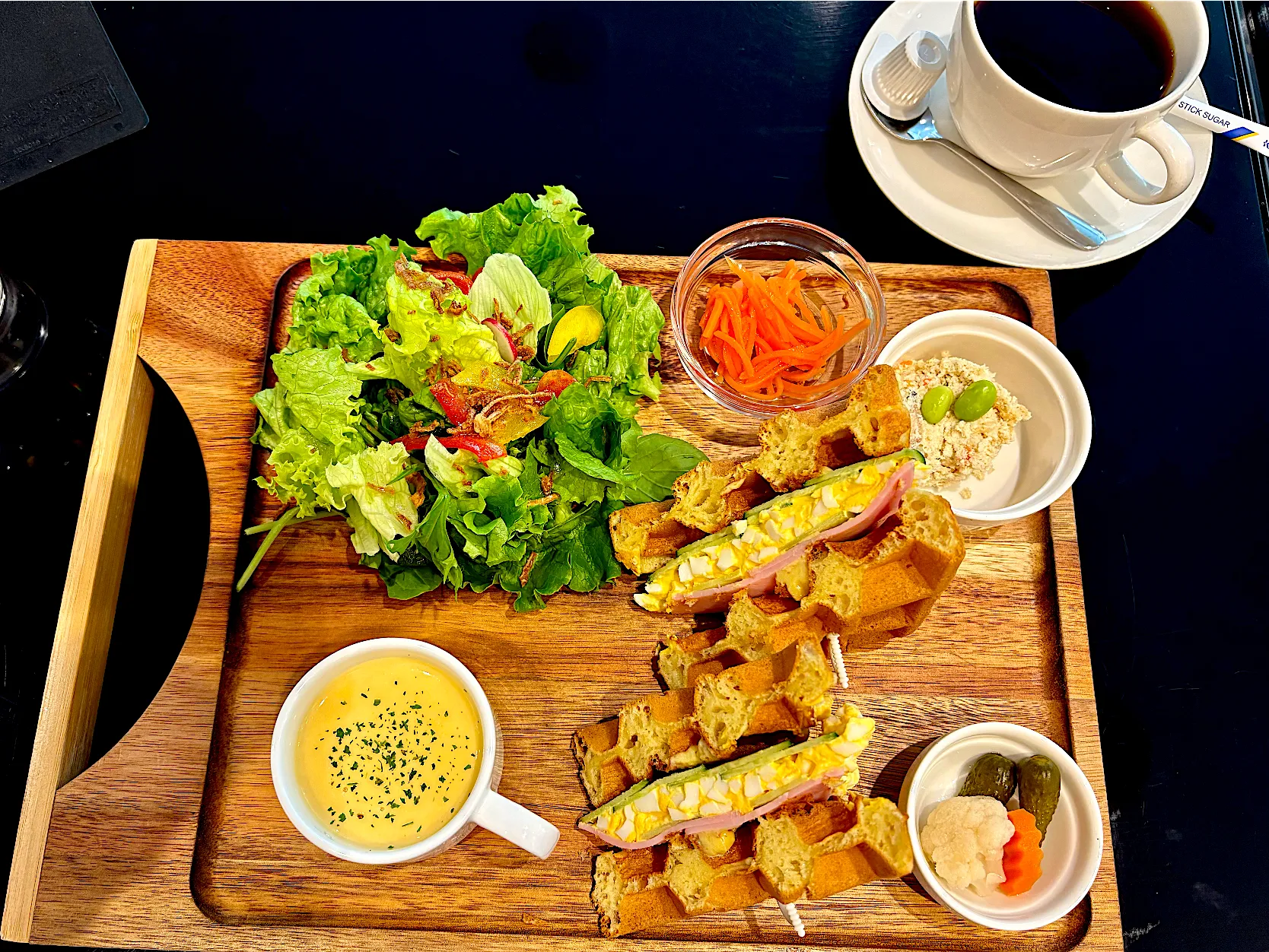 外食です🥰。おからが意外です😆。たまの外食は参考になりますね。そういえば、最近、酢人参を作るのを忘れていました。
