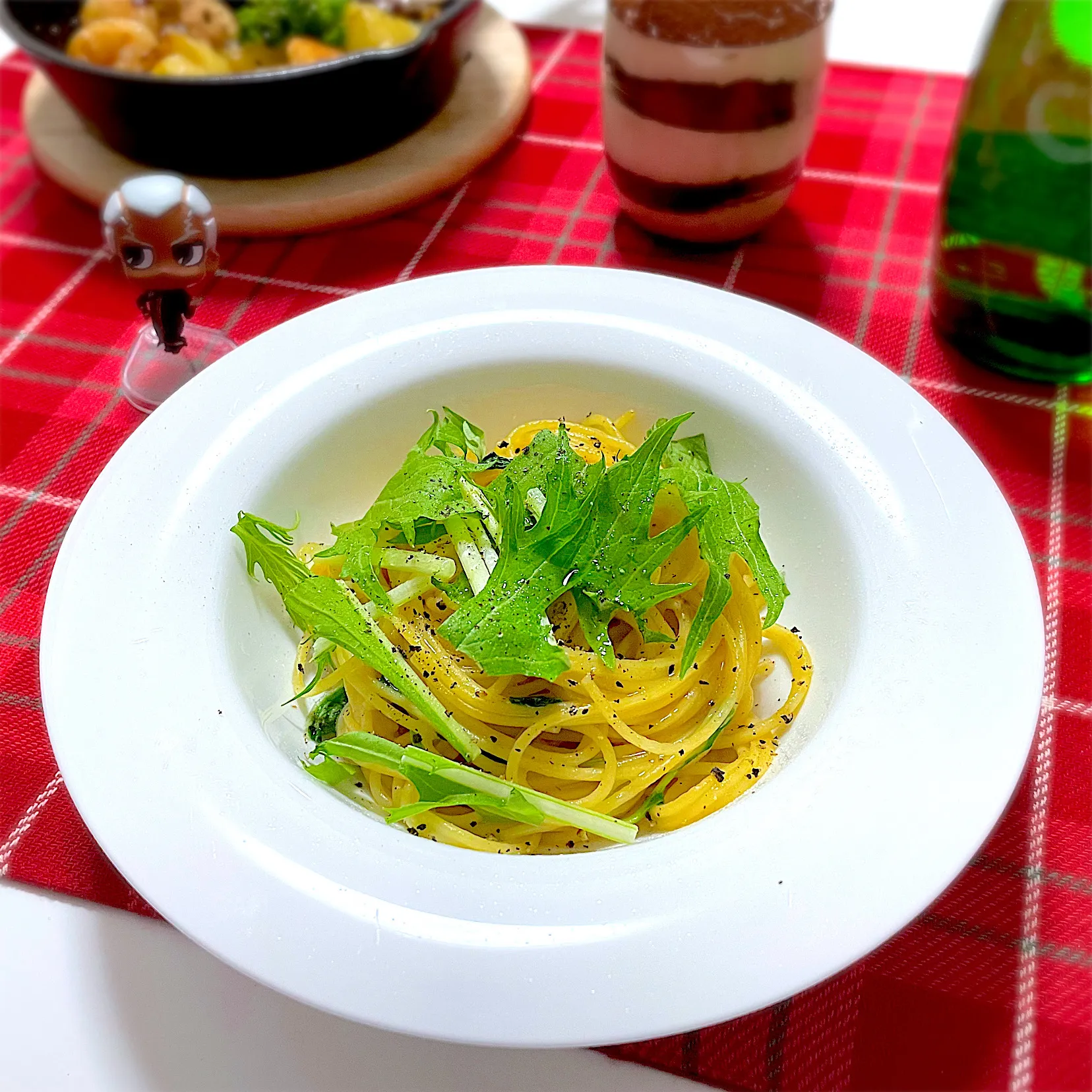 水菜のガーリックオイルパスタ
