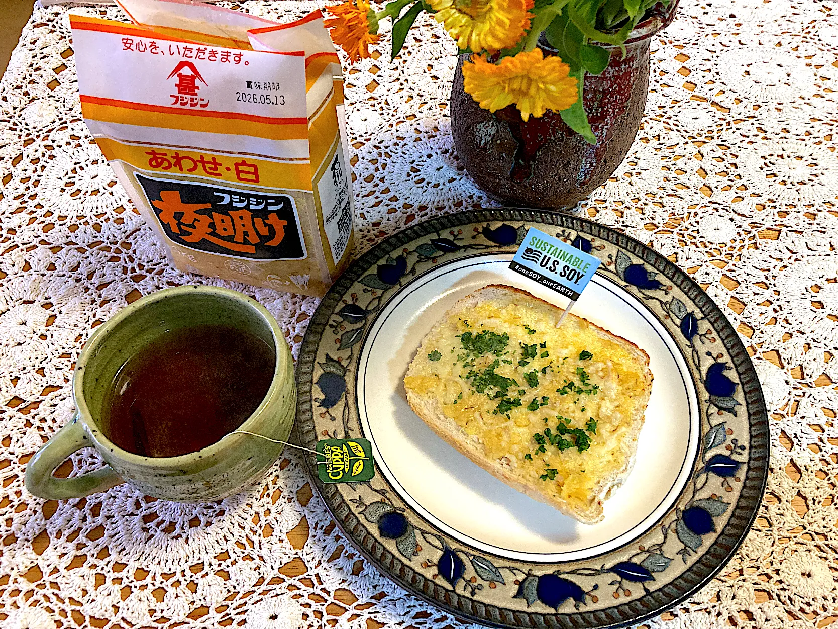 ピザ用チーズをパラパラとトッピングしてトーストし、パセリを載せて。