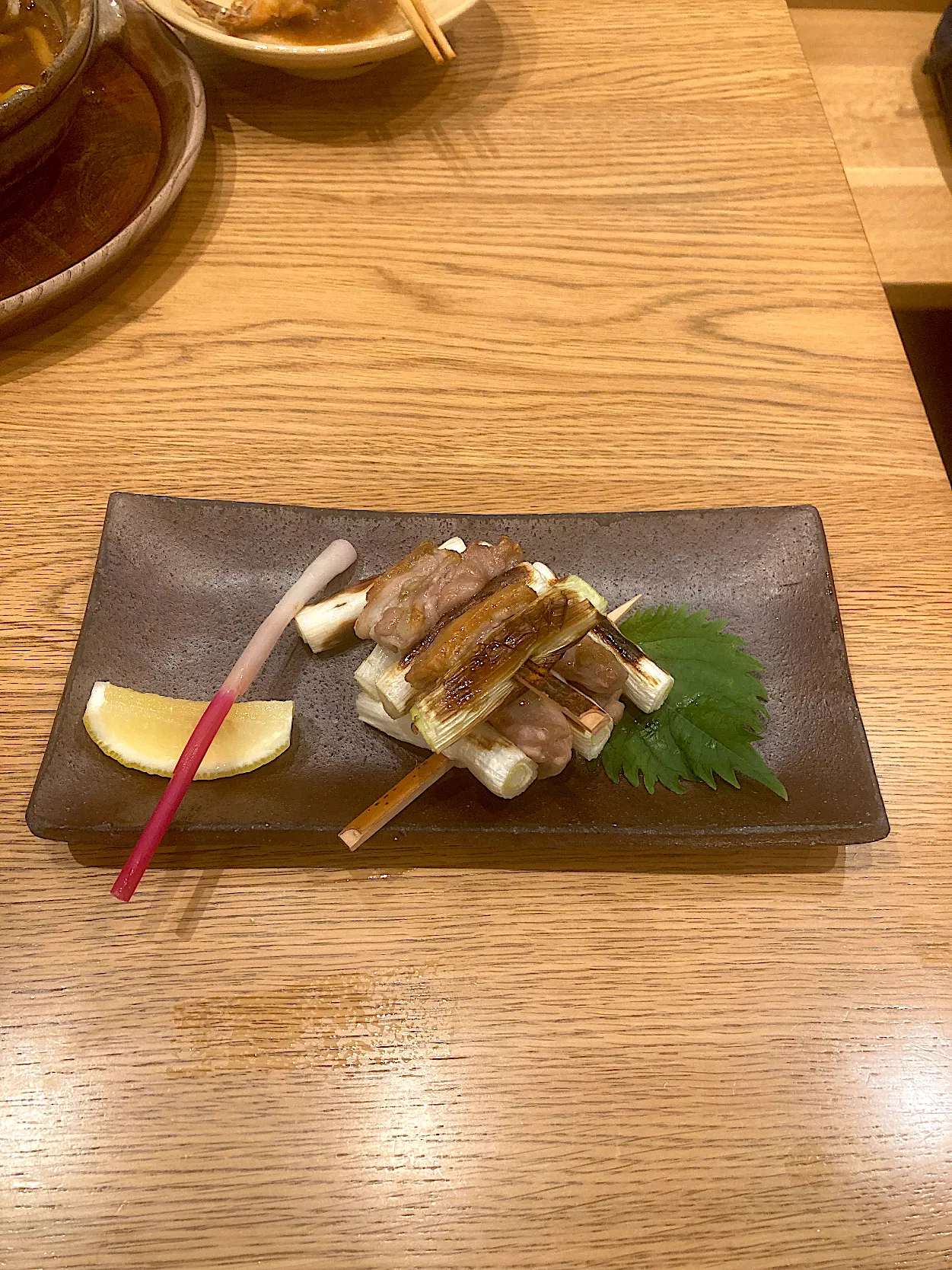 サイドに本日のおすすめ「名古屋コーチンねぎま」をオーダー(実況中継終了)