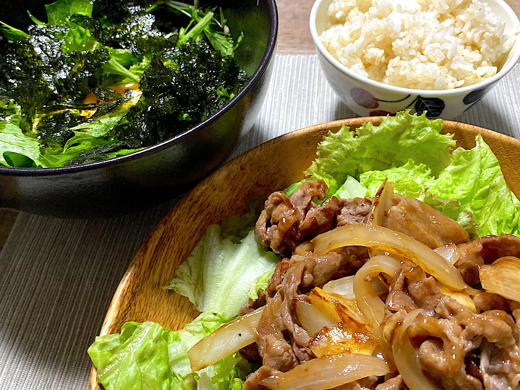 2023/07/08 牛肉とレタスのガーリック炒め,韓国風水菜サラダ@N