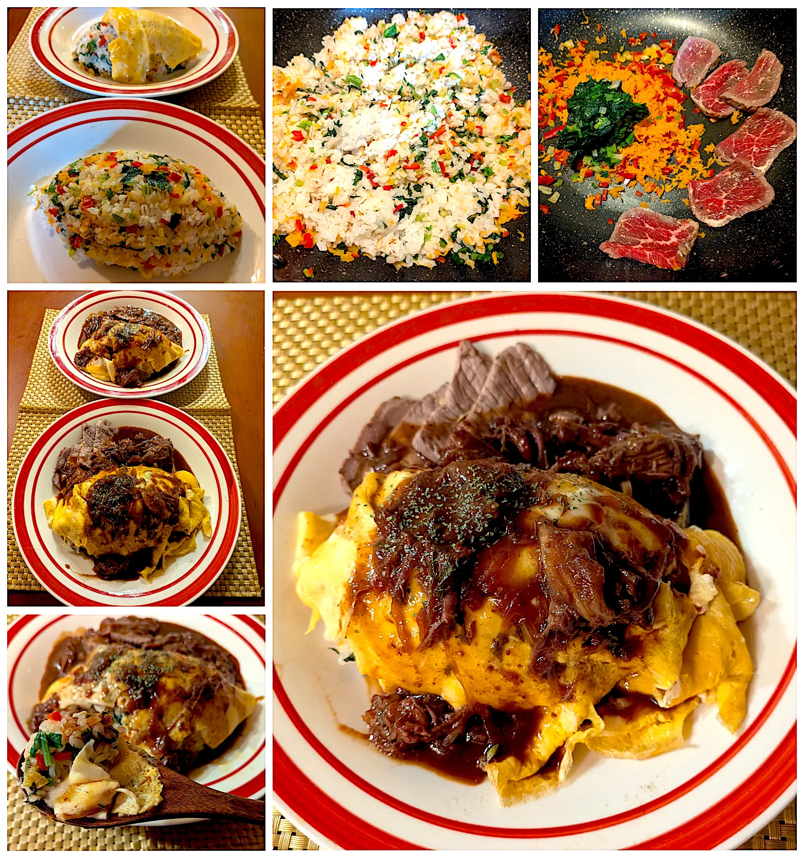 今宵は丼にするにはお肉が少し、だけどほろほろお肉溶け込んだシチューあるからオムライスがけで残り物だけど気分は上がりまくる(‷ ຶ◒ ຶ‷)