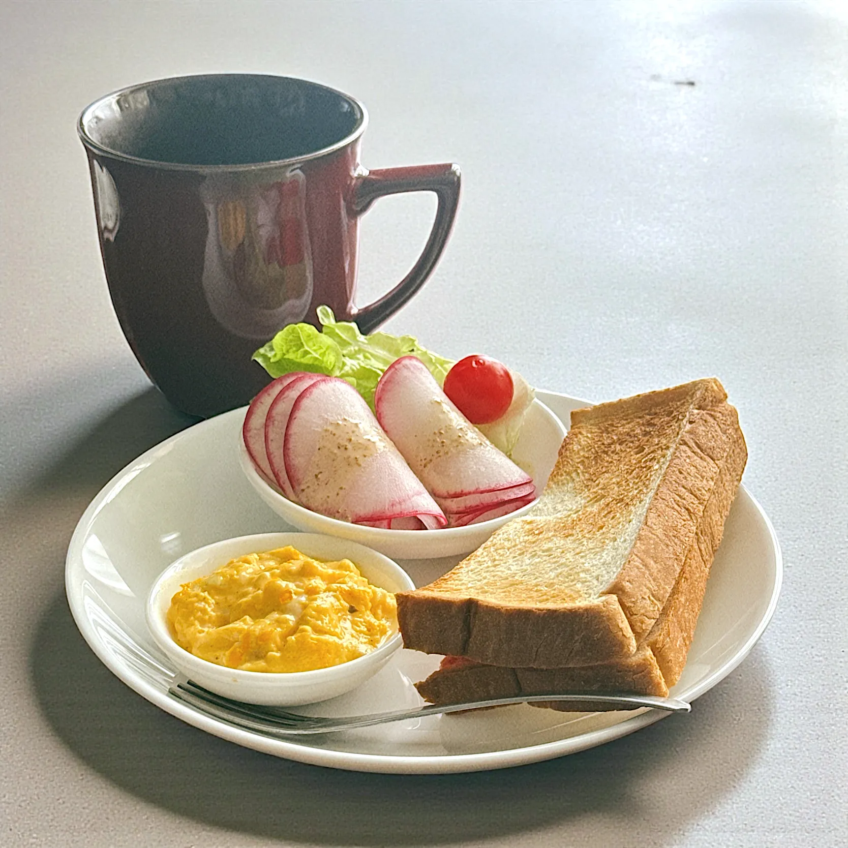 トーストサンドは、チェダーチーズ、ケチャップ。