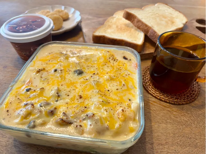 焼かずにレンチン+バーナーで焦げ目をつけて時短。