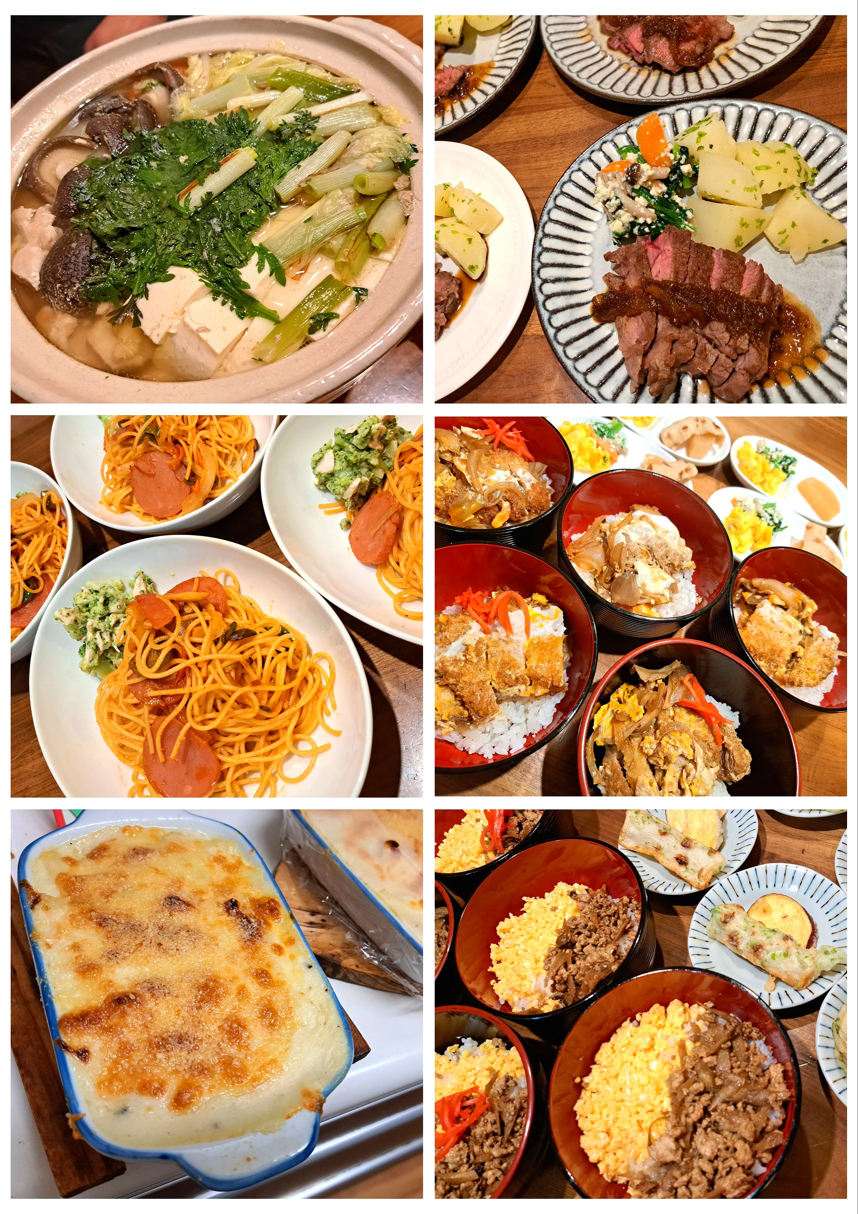 #献立#ステーキ#ナポリタン#グラタン#そぼろ丼