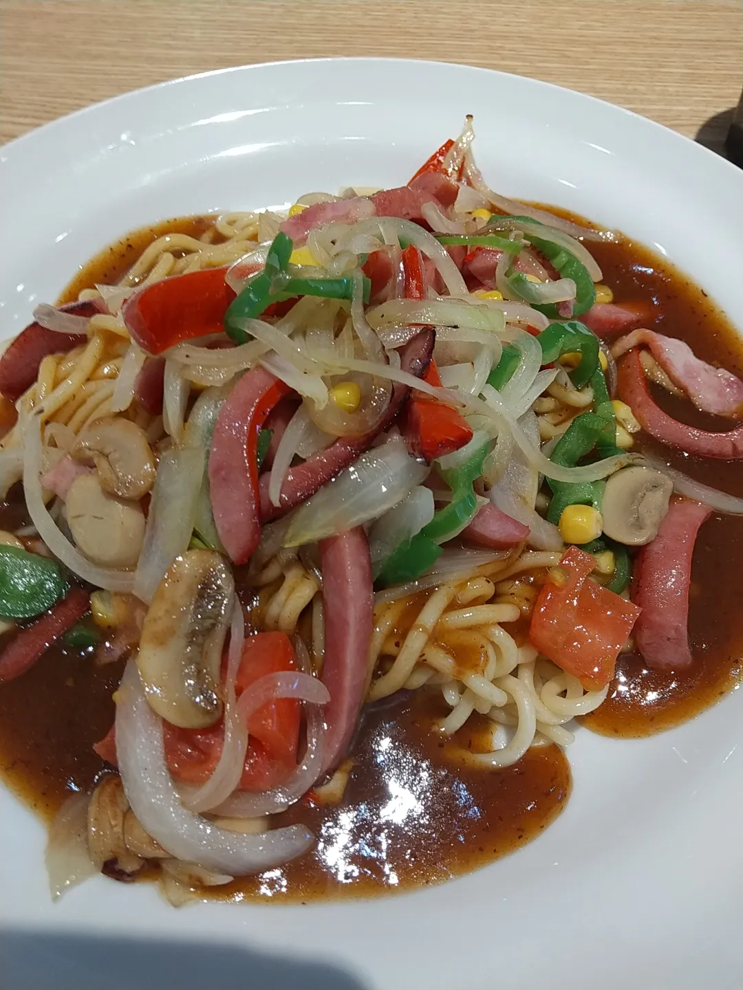 ウインナー、ベーコン、マッシュルーム、オニオン、ピーマン、コーン、トマト